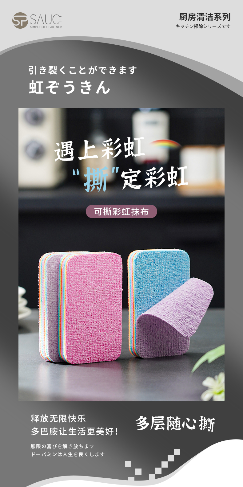 D可撕彩虹抹布 彩虹抹布可撕抹布强力吸水洗碗巾清洁厨房家用懒人不掉毛不沾油
