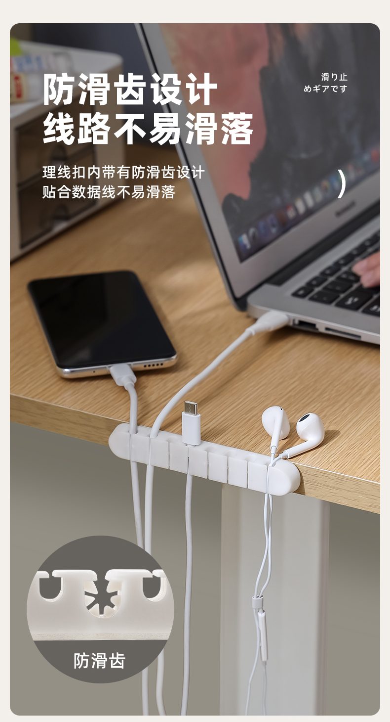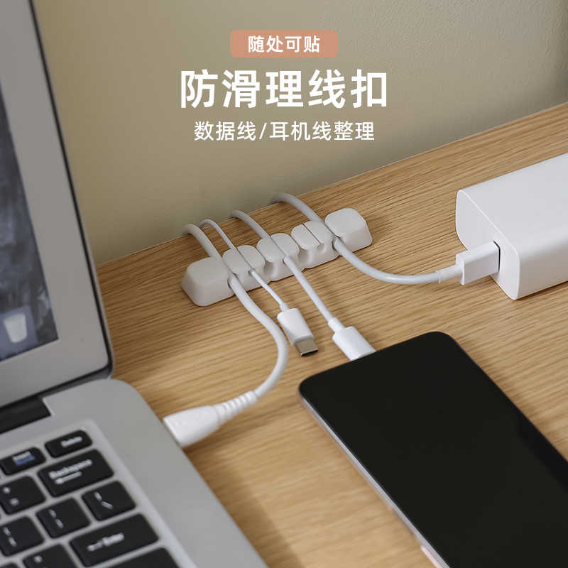 防滑理线扣A款(六孔) 数据线收纳理线器桌面充电线固定集线桌下卡扣绕线收线扎带束整理