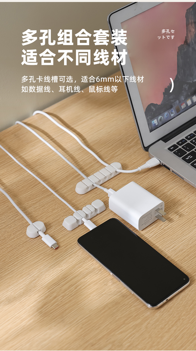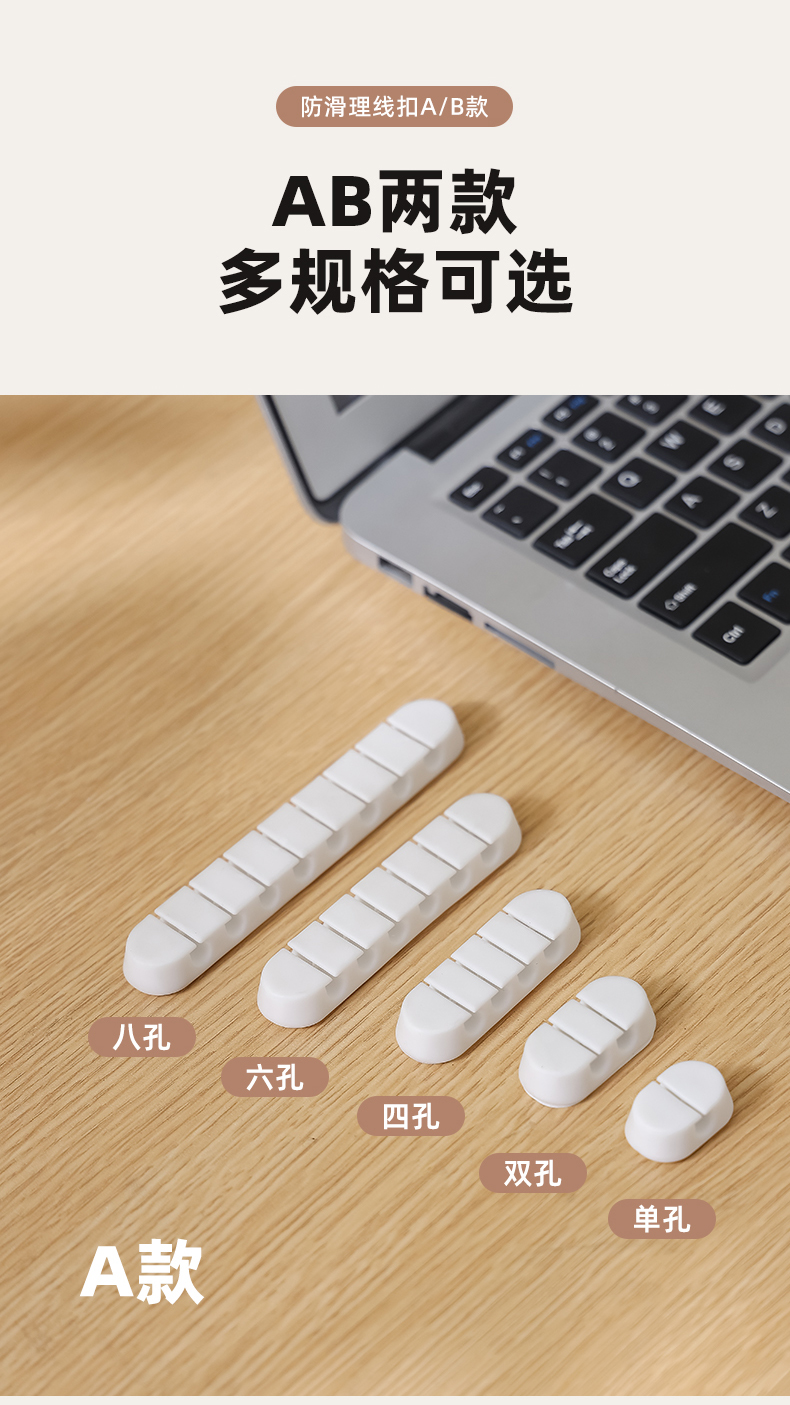 防滑理线扣A款(八孔) 数据线收纳理线器桌面充电线固定集线桌下卡扣绕线收线扎带束整理