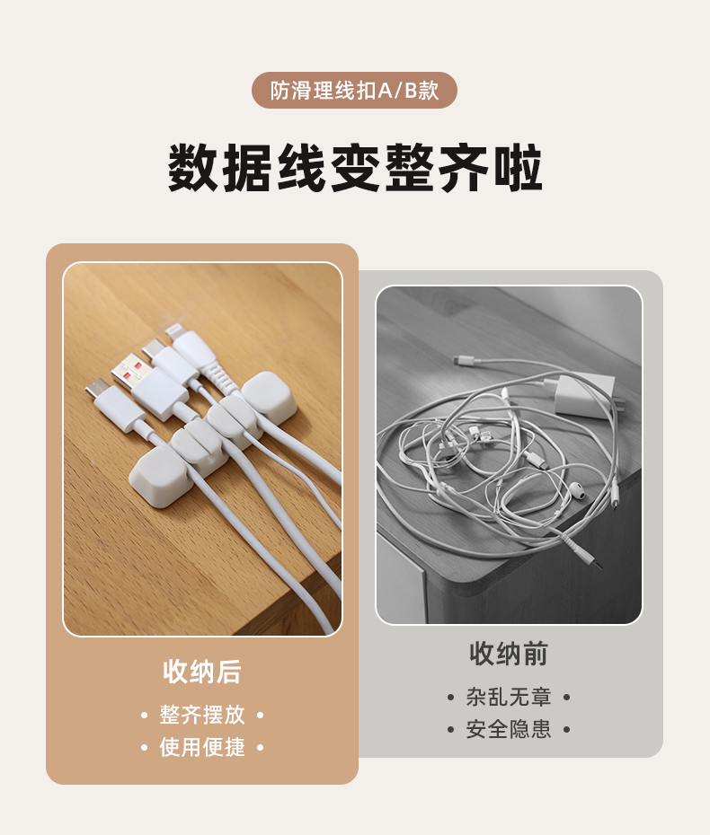防滑理线扣B款(单孔) 数据线收纳理线器桌面充电线固定集线桌下卡扣绕线收线扎带束整理