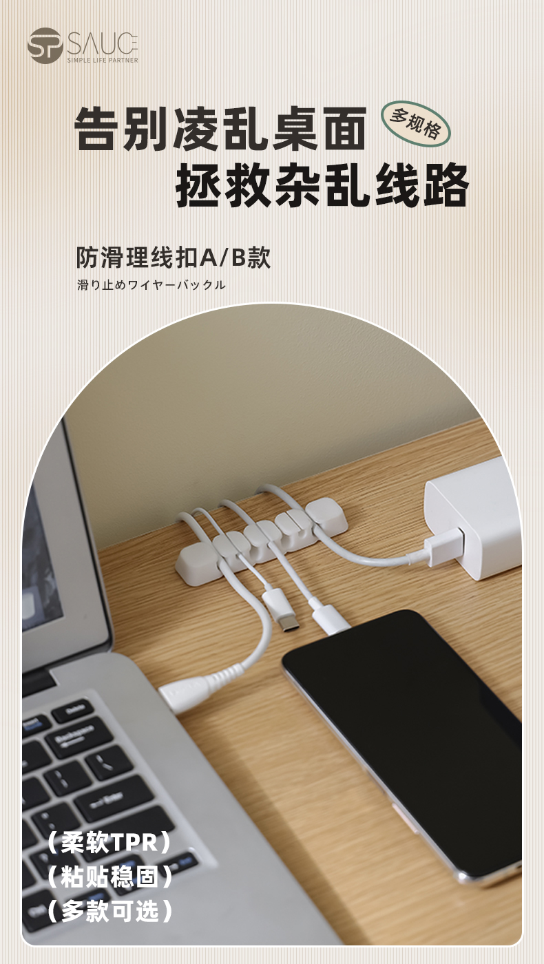 防滑理线扣B款(五孔) 数据线收纳理线器桌面充电线固定集线桌下卡扣绕线收线扎带束整理