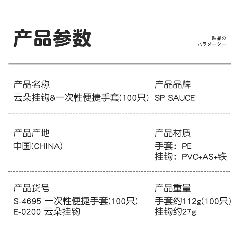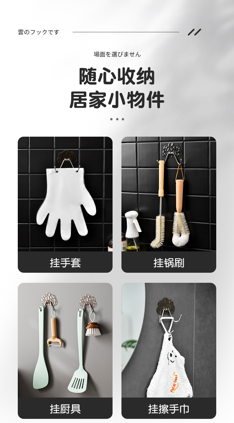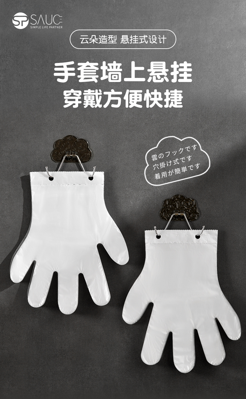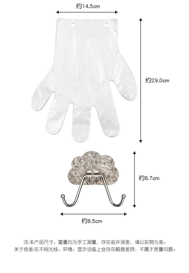 D 云朵挂钩(单只装) 一次性手套云朵式手套整理架子加厚食品级手套免打孔壁挂挂钩