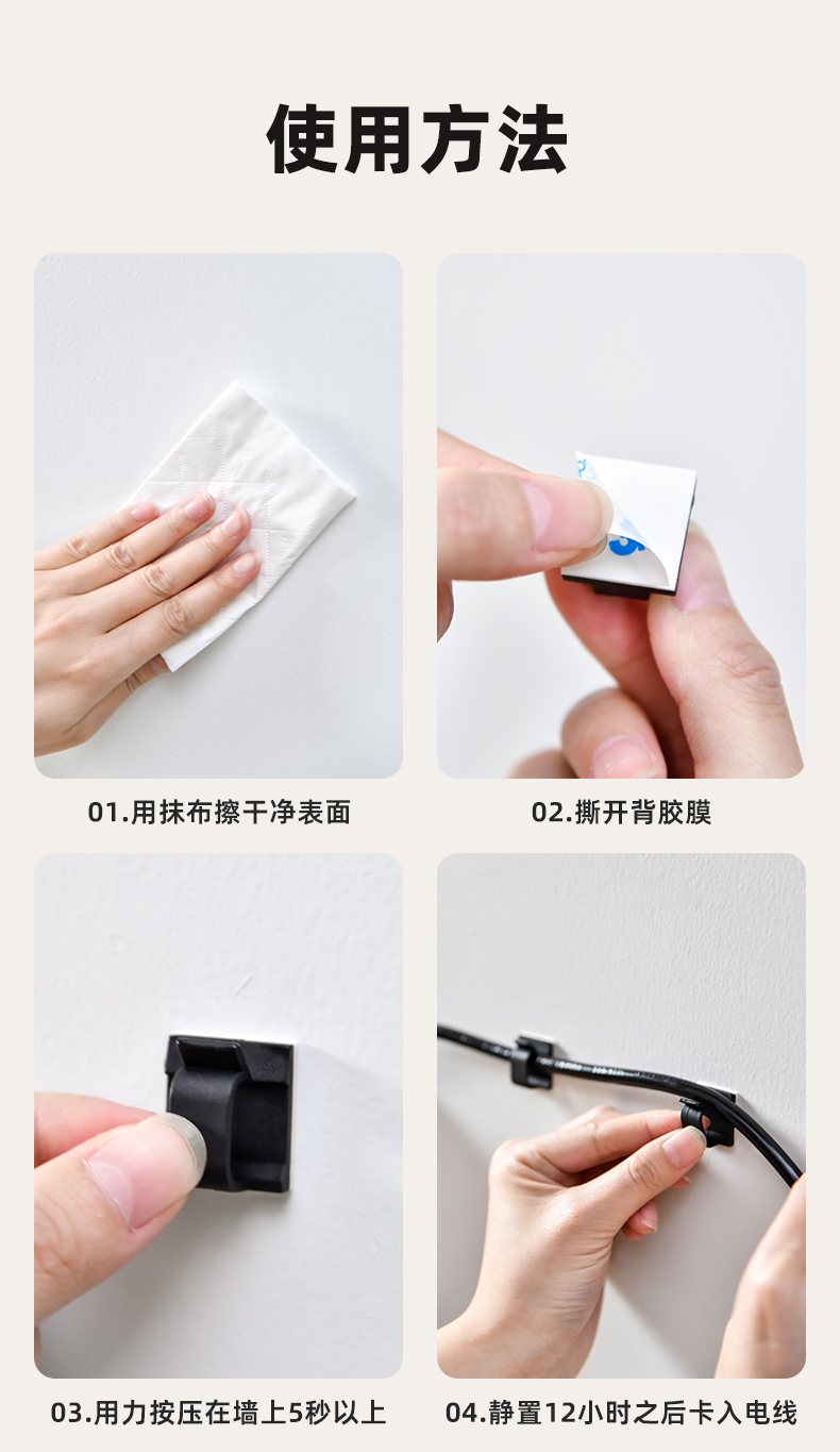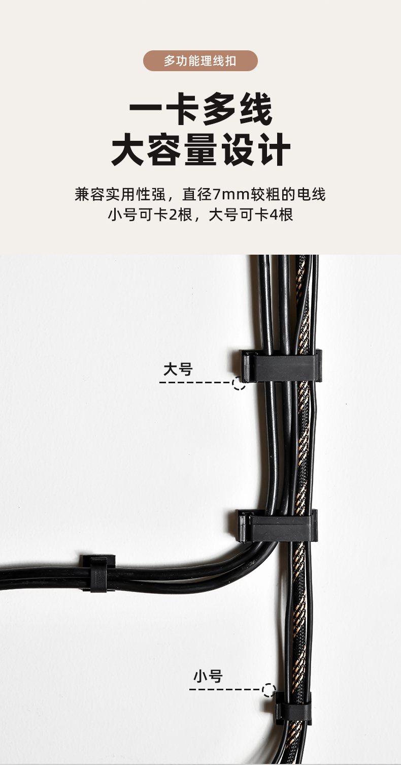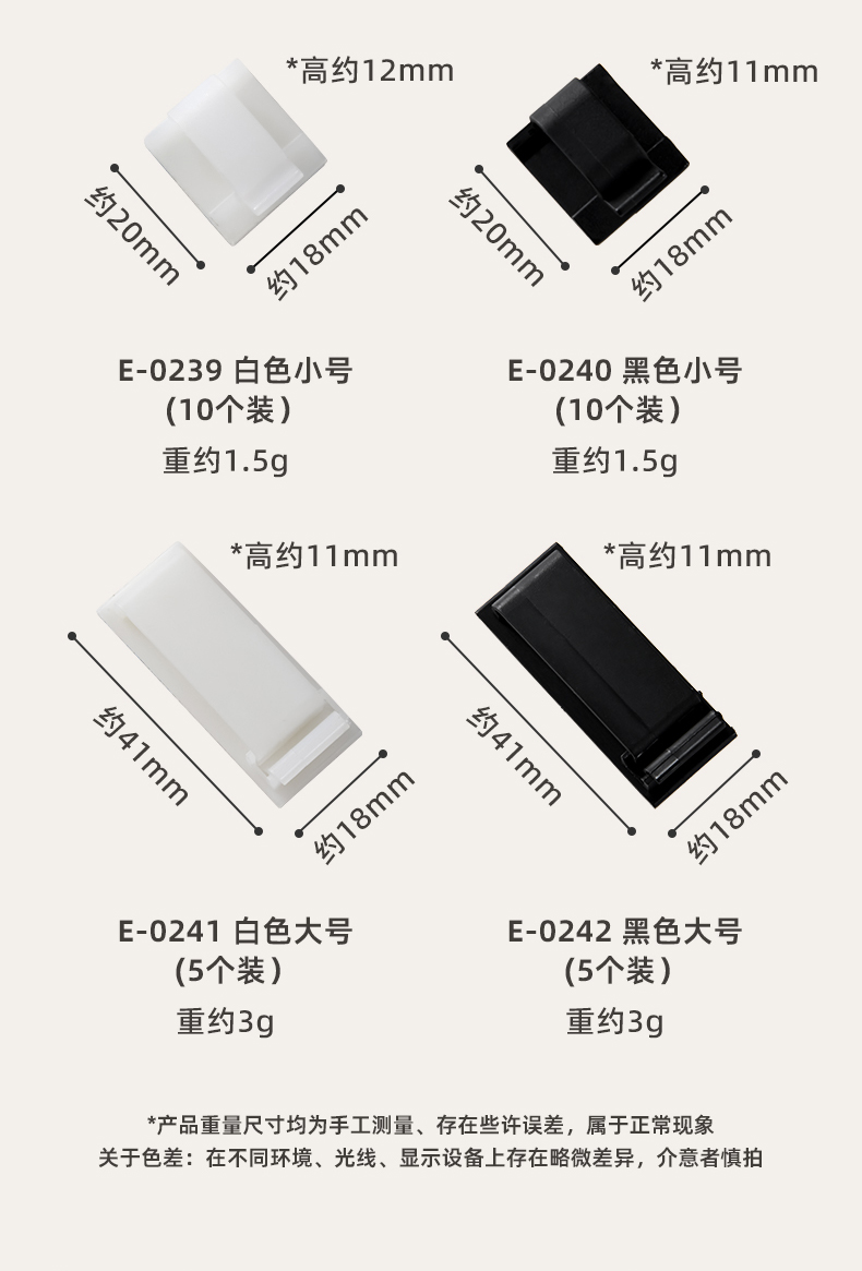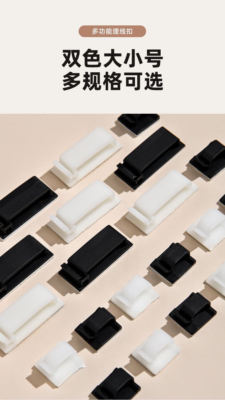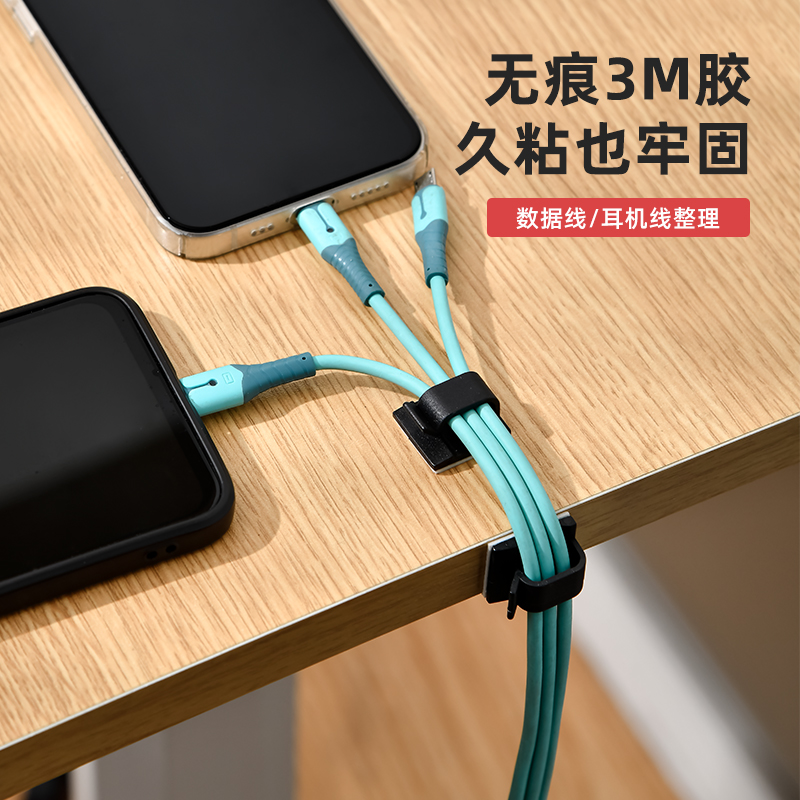 多功能理线扣小号(10个装) 3M背胶粘式固定座机箱自粘电线扣配线夹桌面理线器活扣