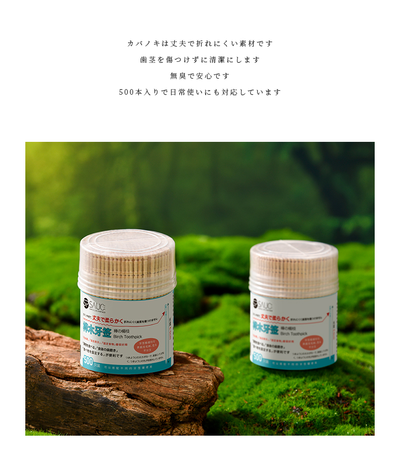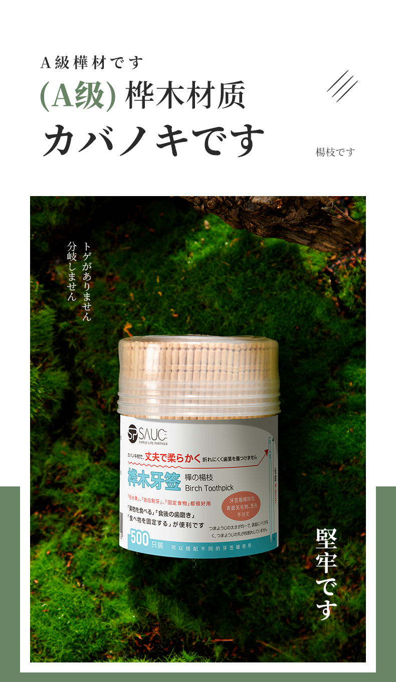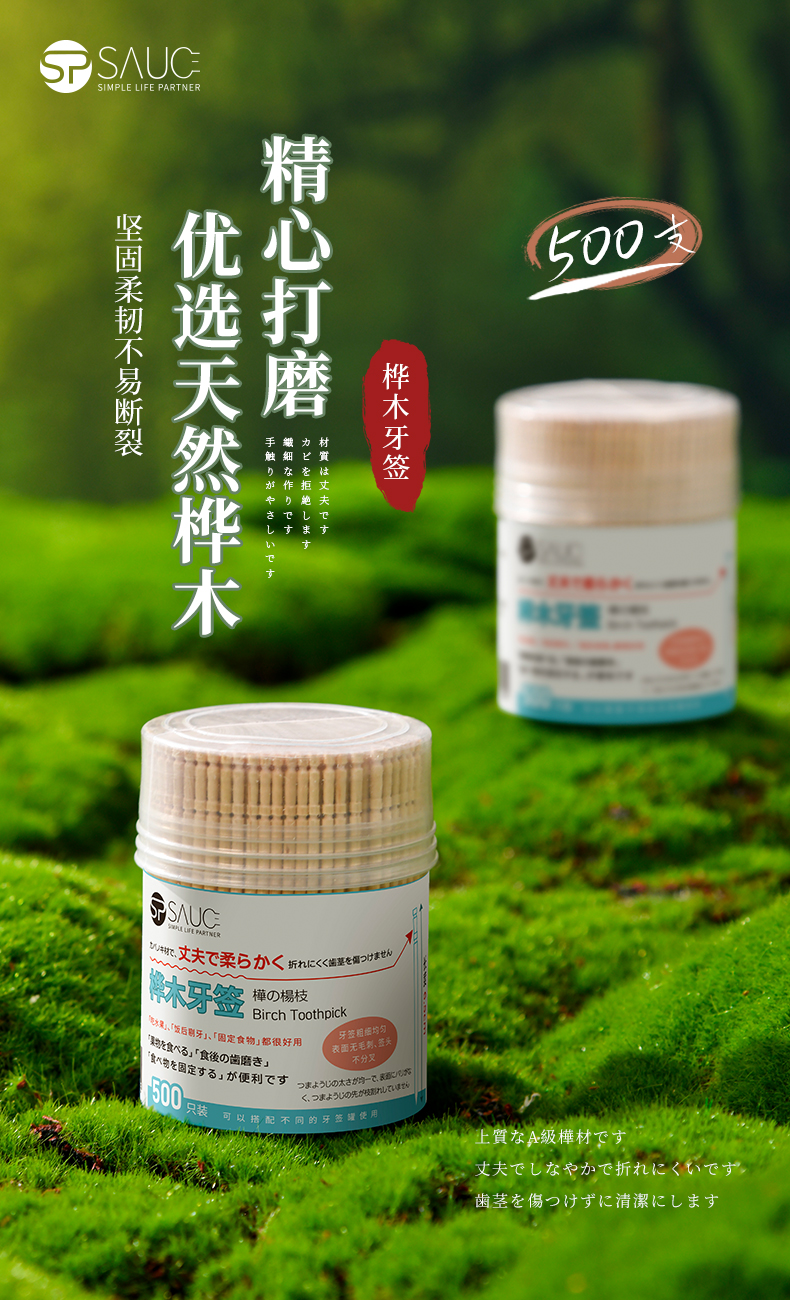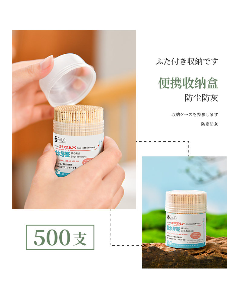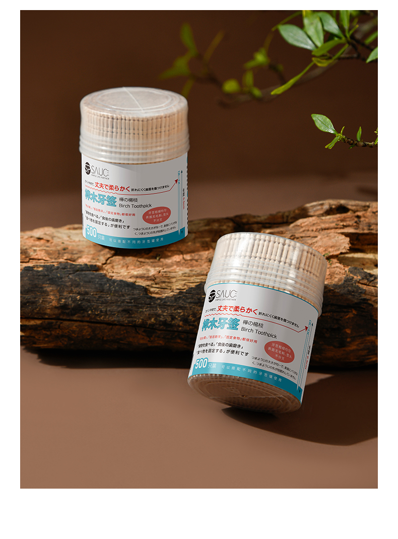 桦木牙签(500支) 一次性桦木牙签单头尖细实木剔牙棒加粗水果签带牙签桶