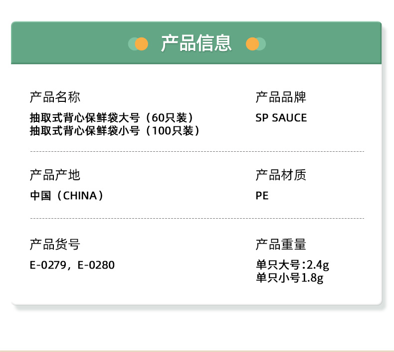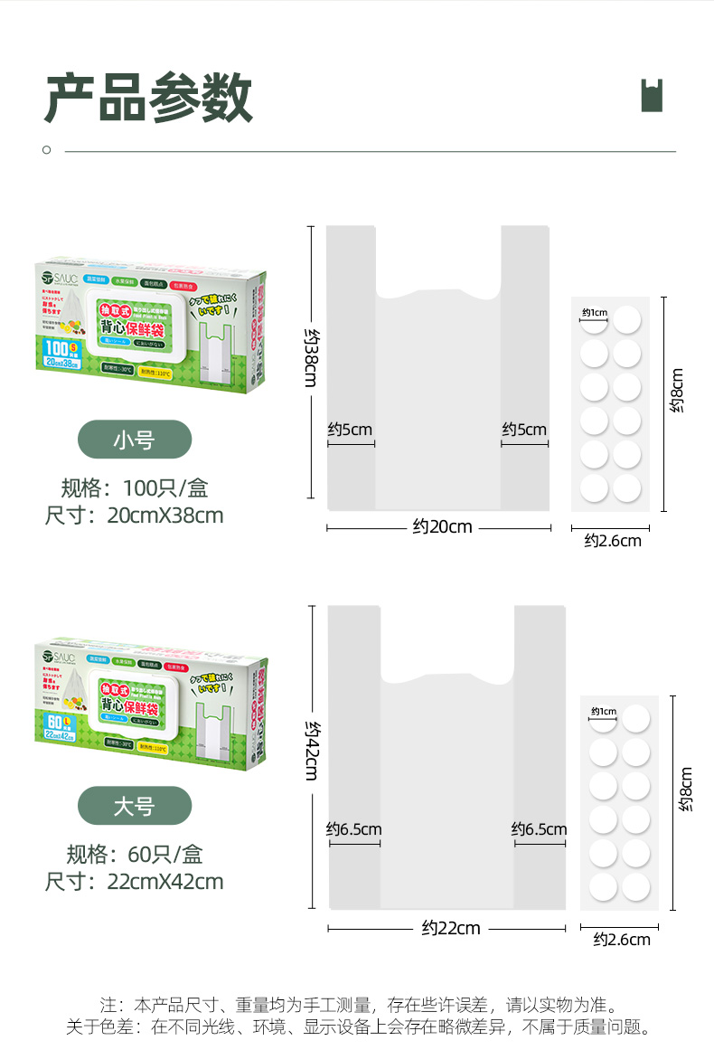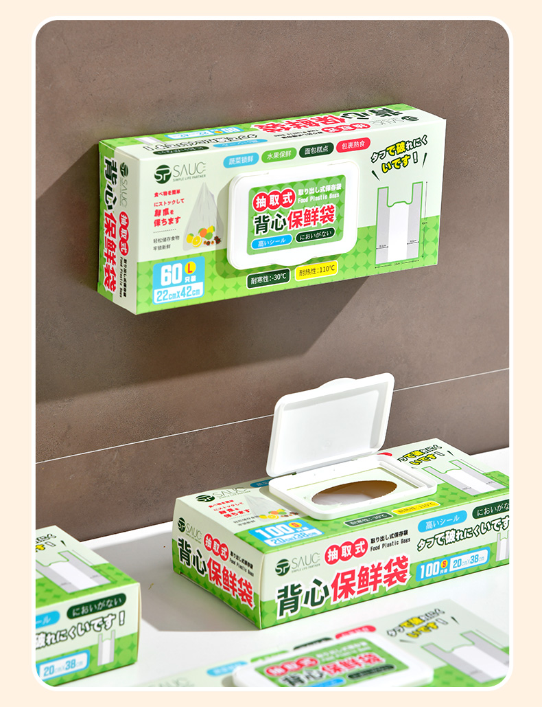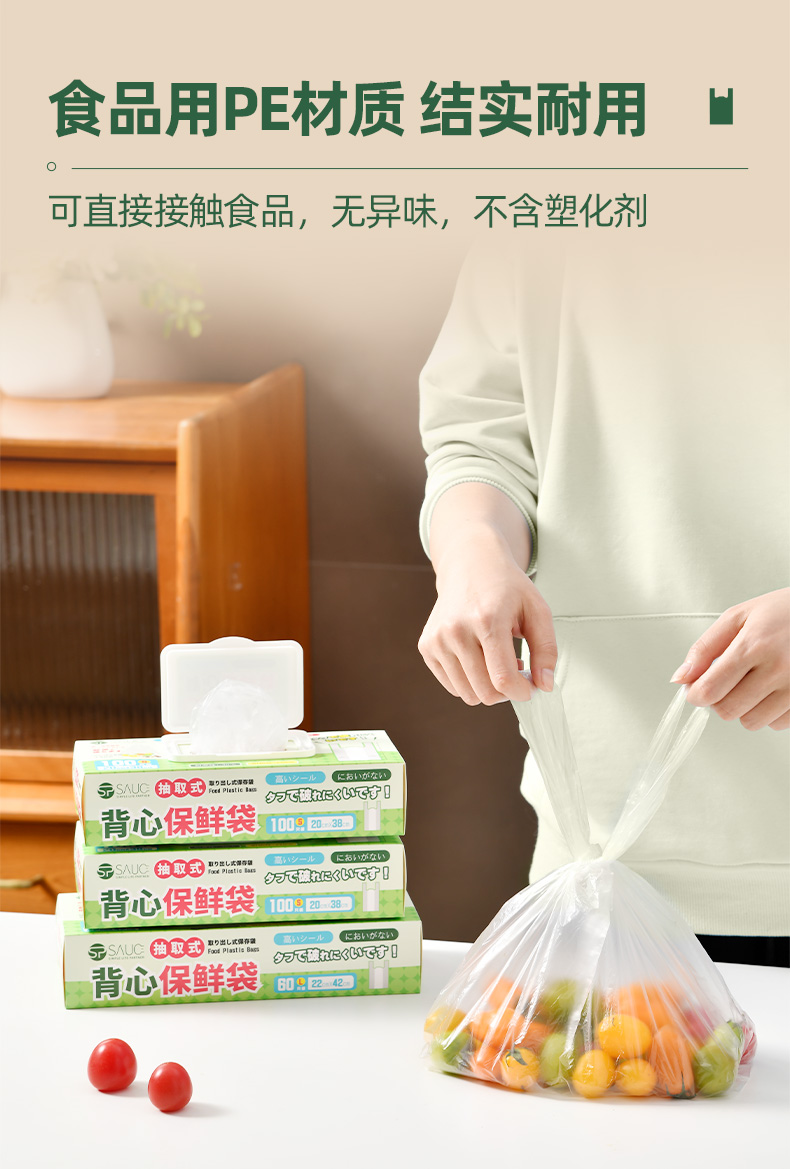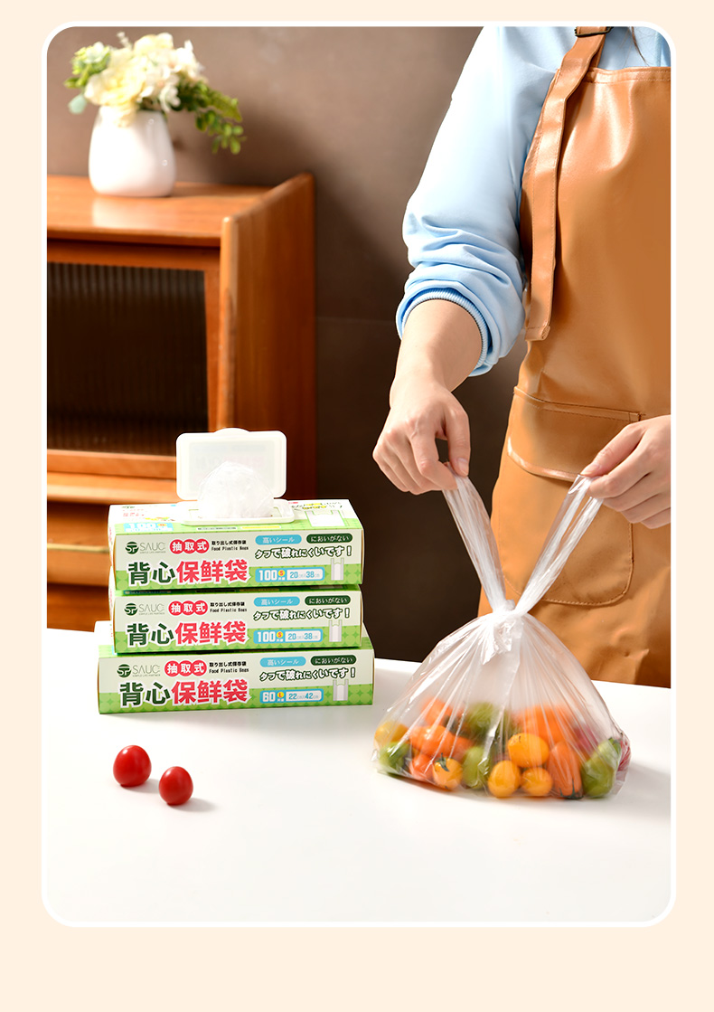 抽取式背心保鲜袋小号(100只装) 背心式保鲜袋食品级家用食品专用袋一次性早餐打包塑料袋