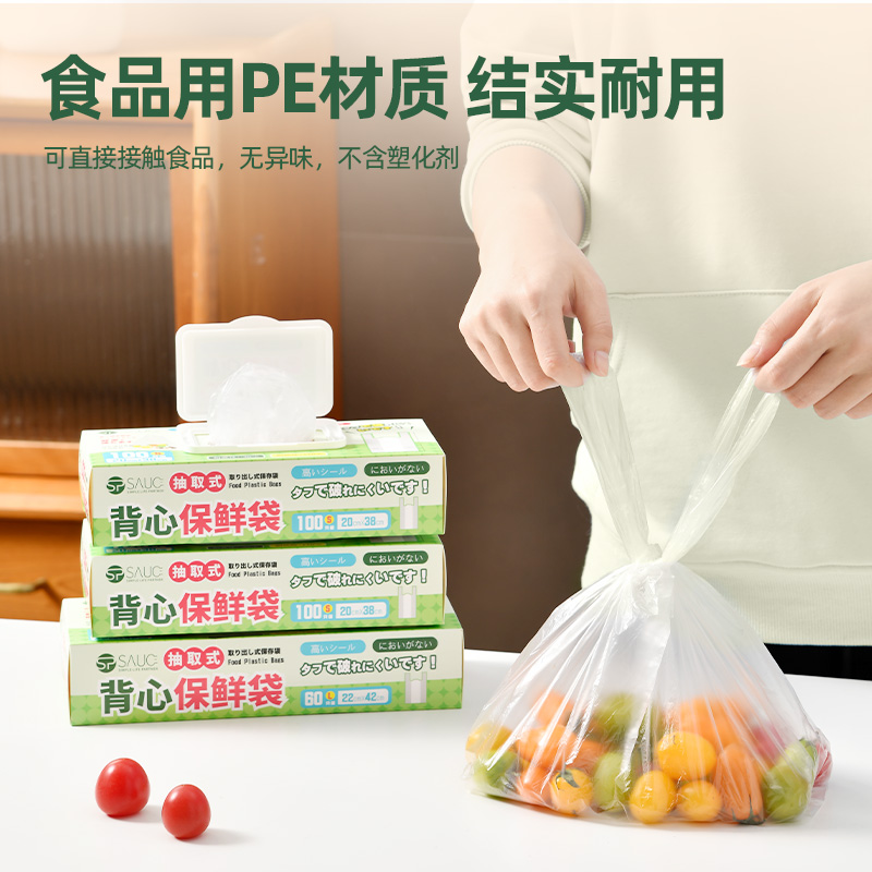 抽取式背心保鲜袋大号(60只装) 背心式保鲜袋食品级家用食品ㄓ么淮涡栽绮痛虬芰洗�