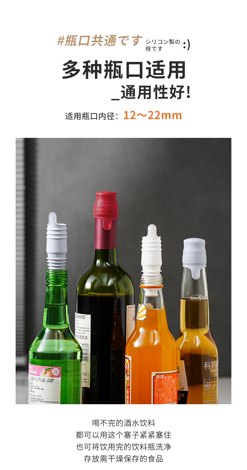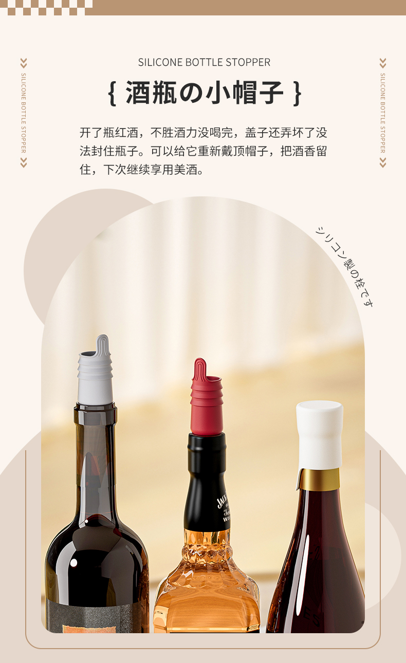 D 硅胶瓶口塞(两个装) 硅胶红酒密封塞通用香槟塞家用创意简易保鲜防漏塞葡萄酒瓶封口塞