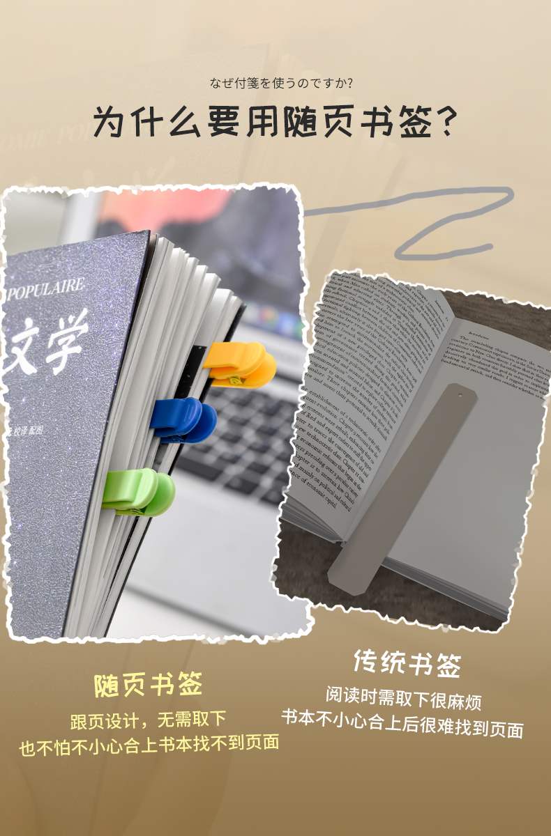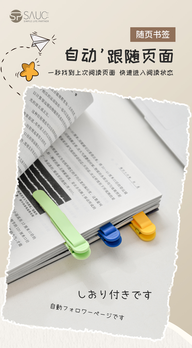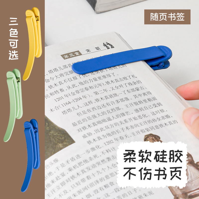 随页书签 自动跟页随阅书签家用学生硅胶不变形书签简洁实用多功能阅读书签