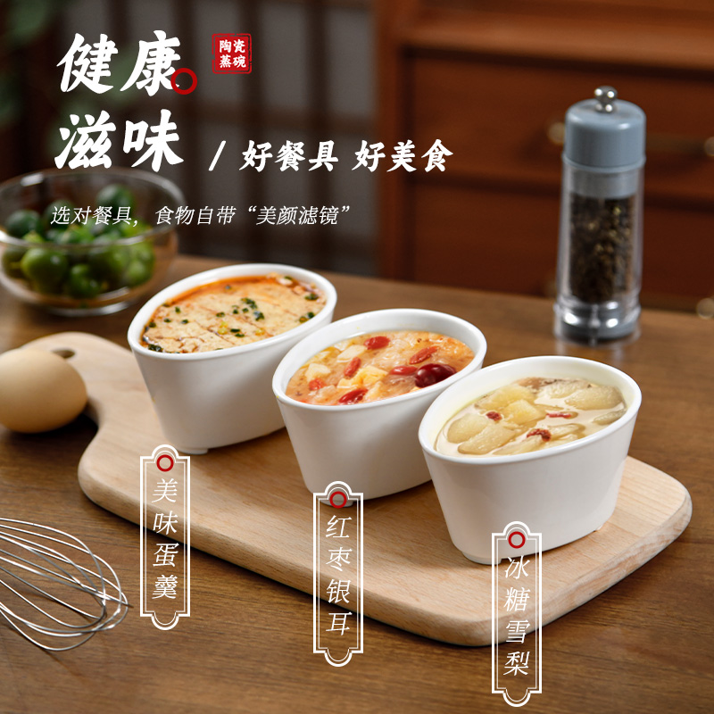 陶瓷蒸碗200ml 陶瓷蒸蛋碗家用儿童蒸鸡蛋羹专用碗带盖炖蛋盅小蒸菜碗辅食碗