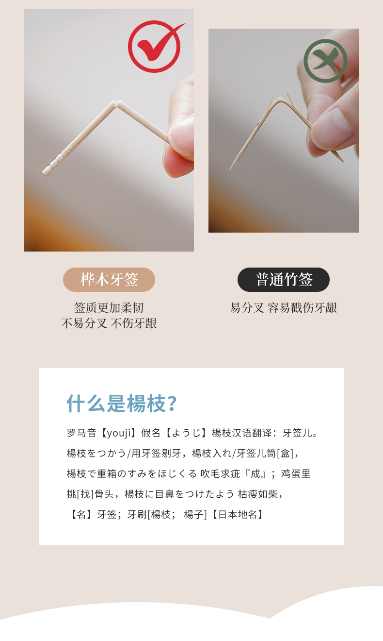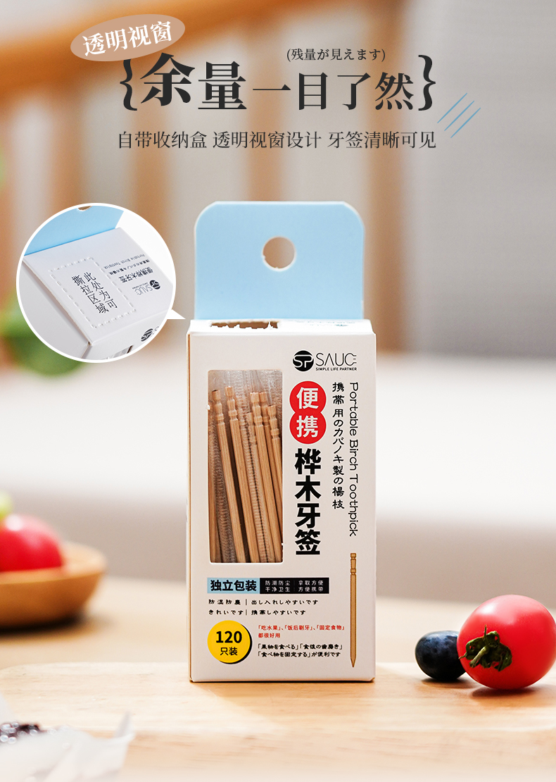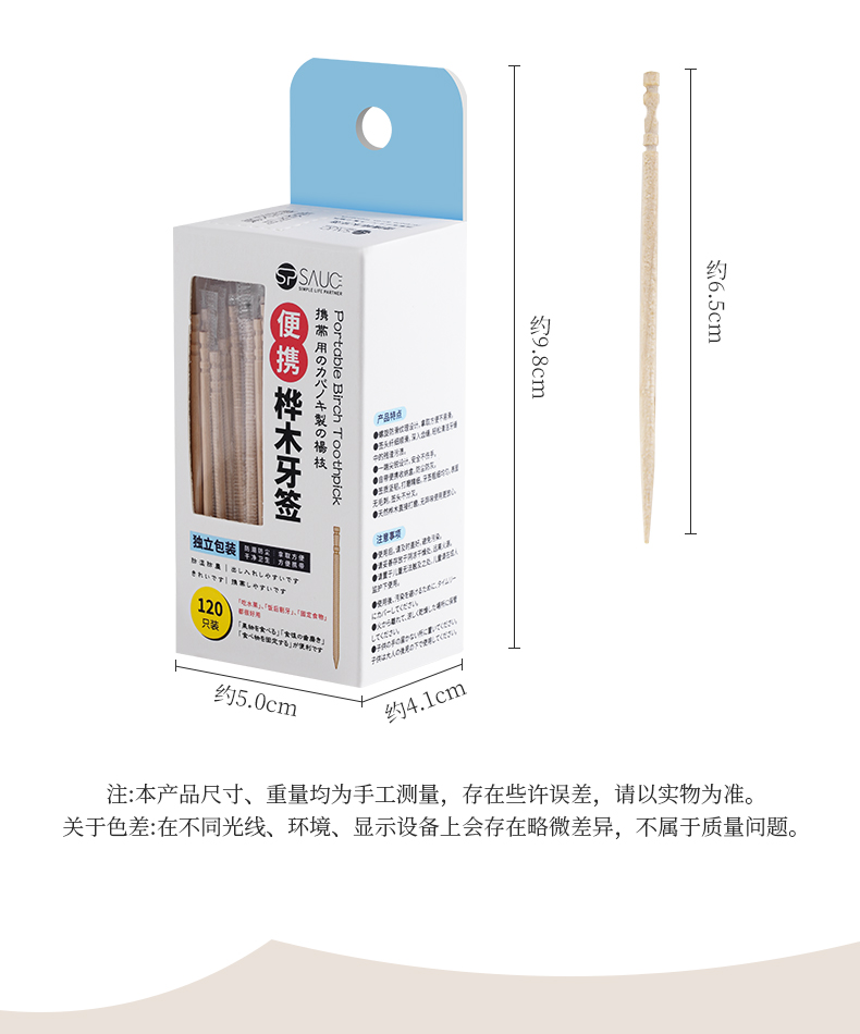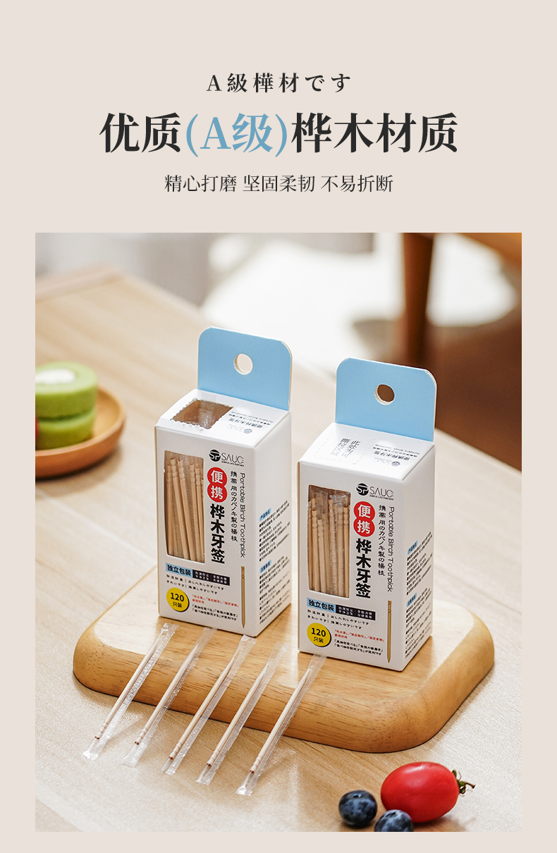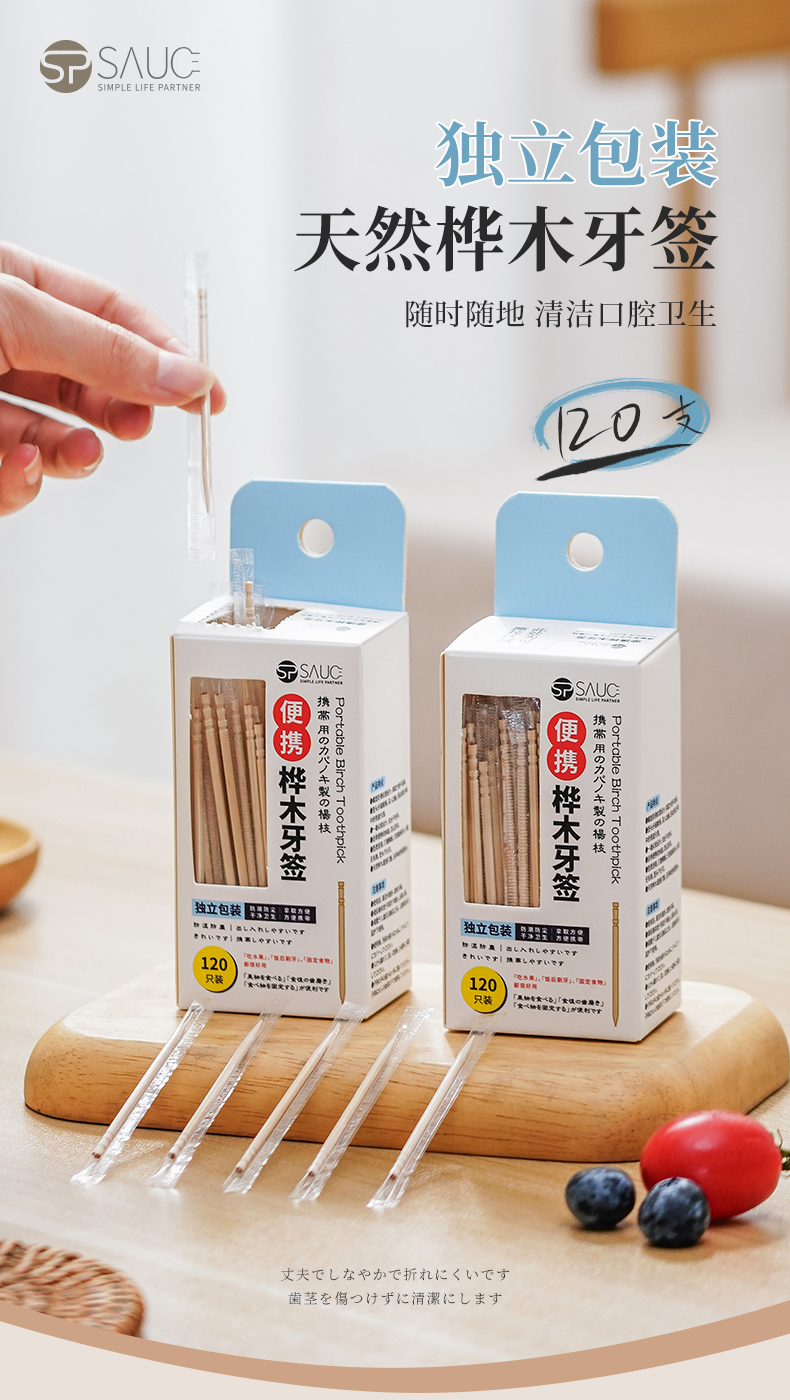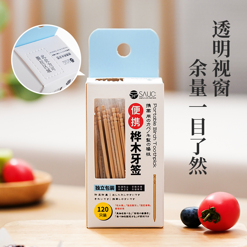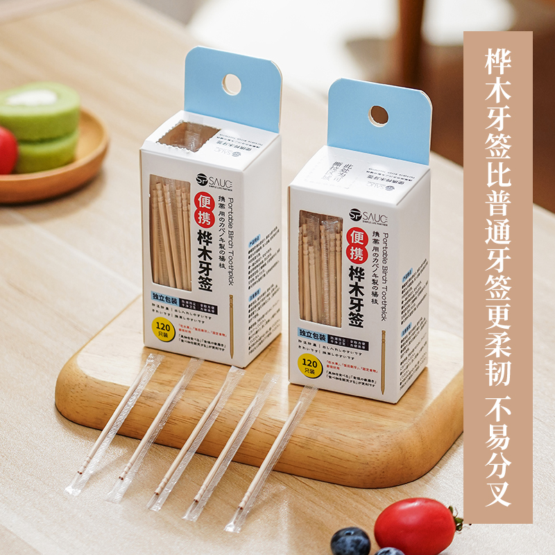 便携桦木牙签(120支装) 一次性牙签桦木牙线棒随身便携独立包装家用剔牙高级水果签120支