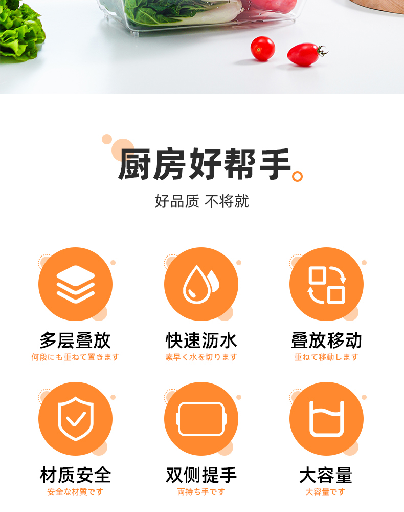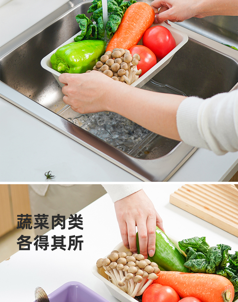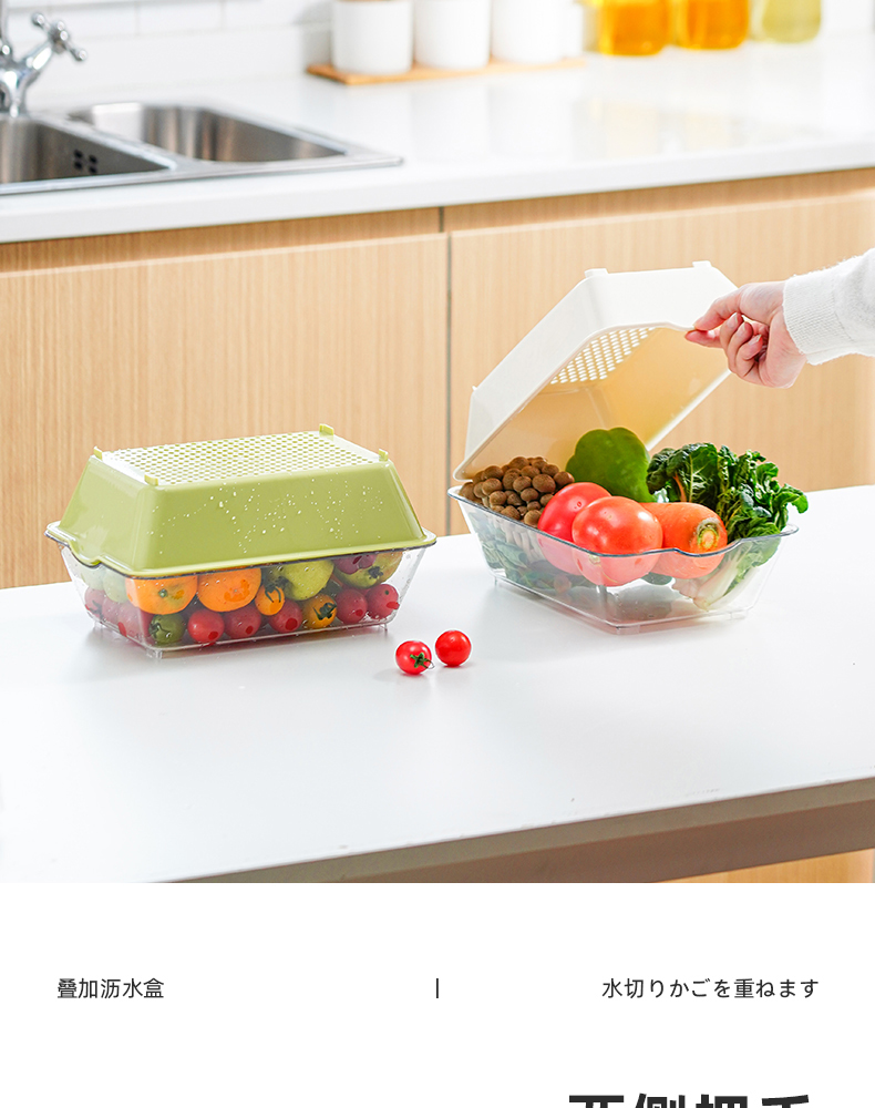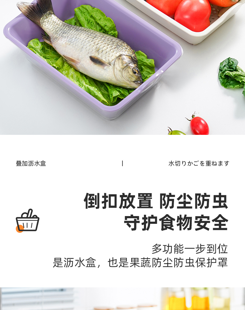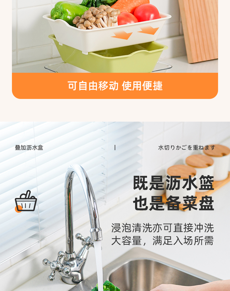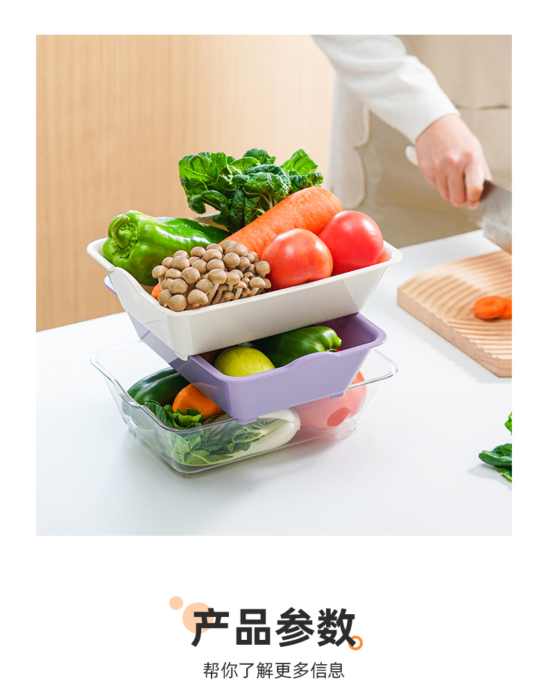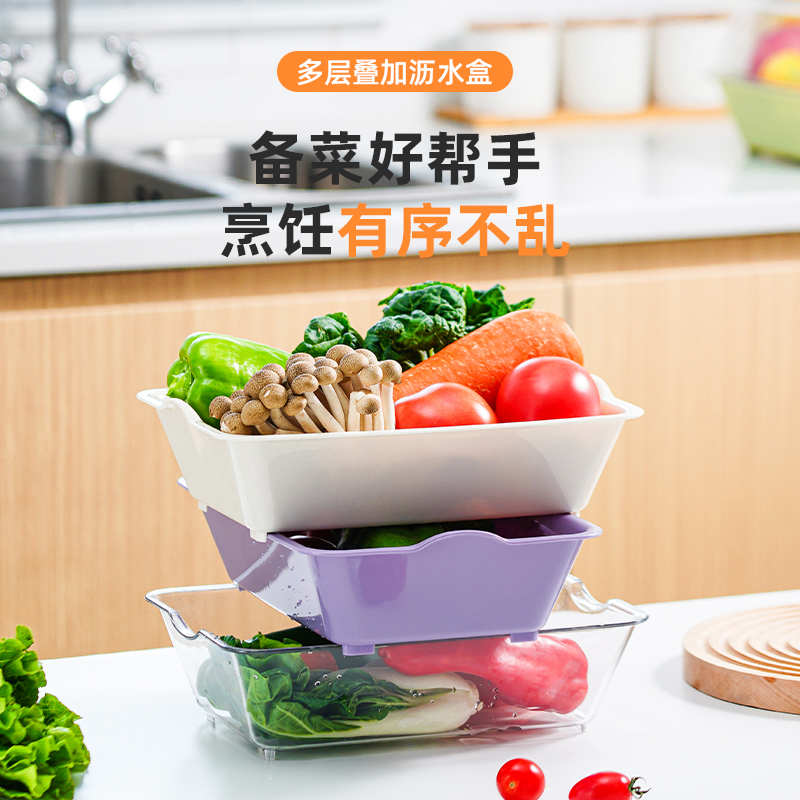 叠加沥水盒(两层) 洗菜盆沥水篮家用厨房双层洗水果蔬菜篮子漏网滤水篮淘菜盆