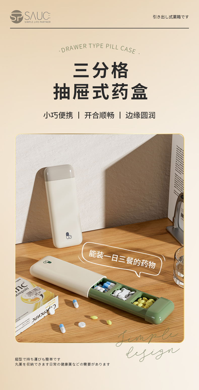 D 便携抽屉式药盒(3格)