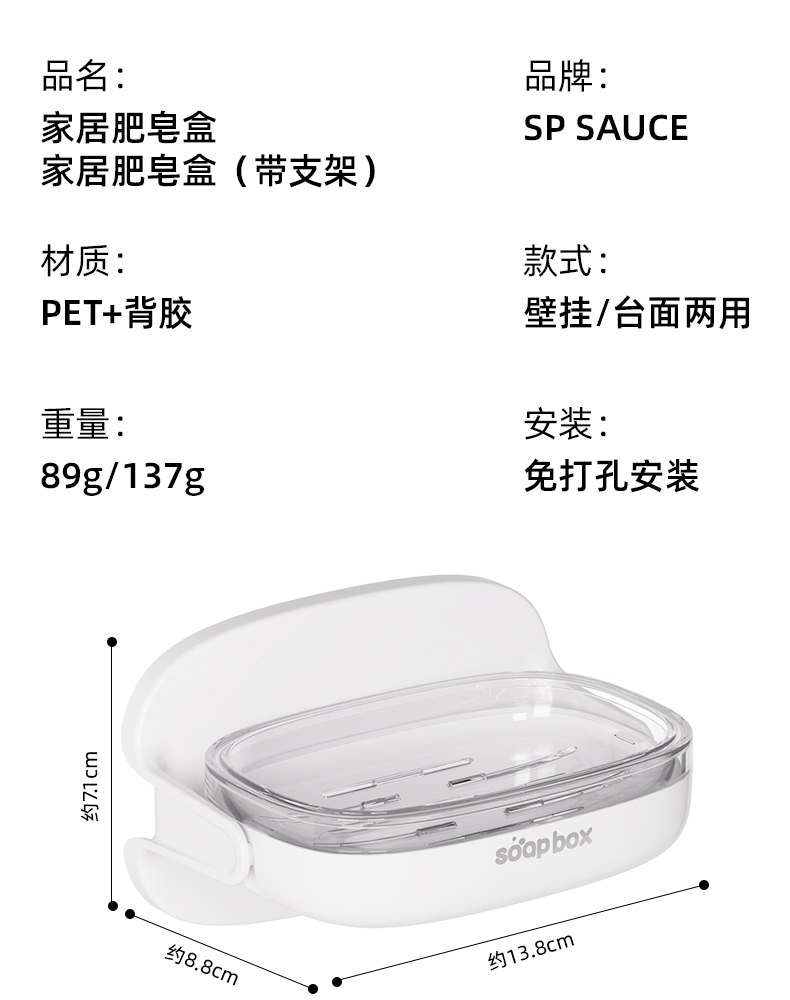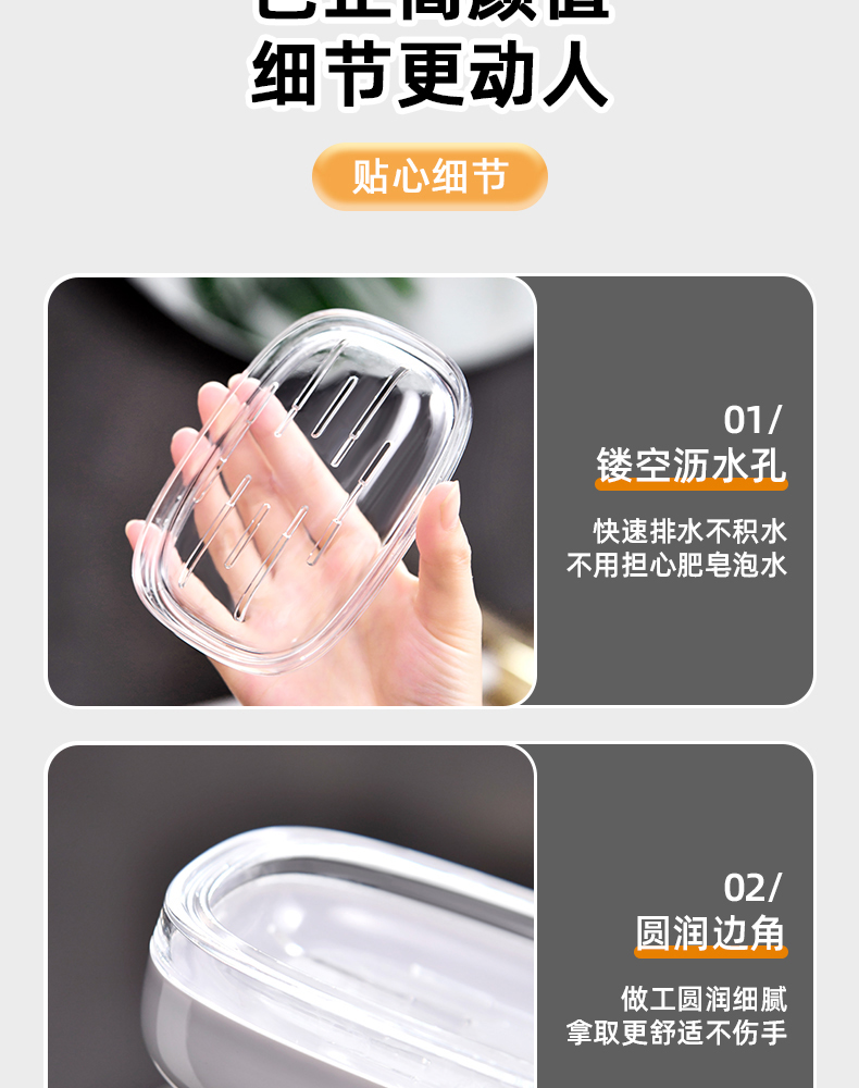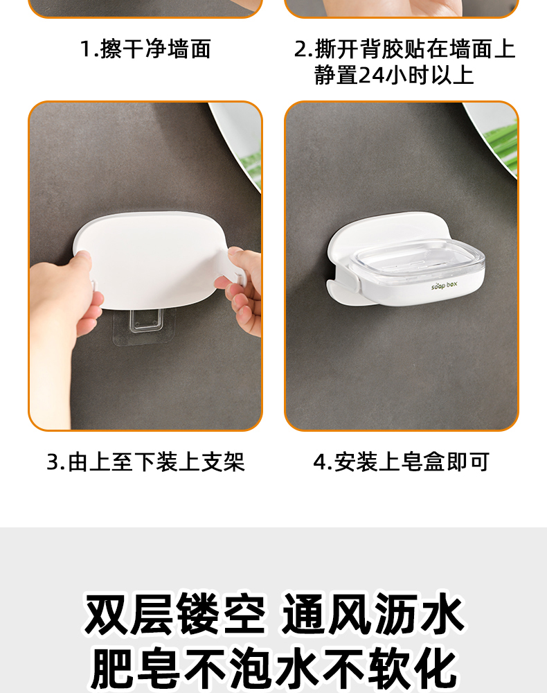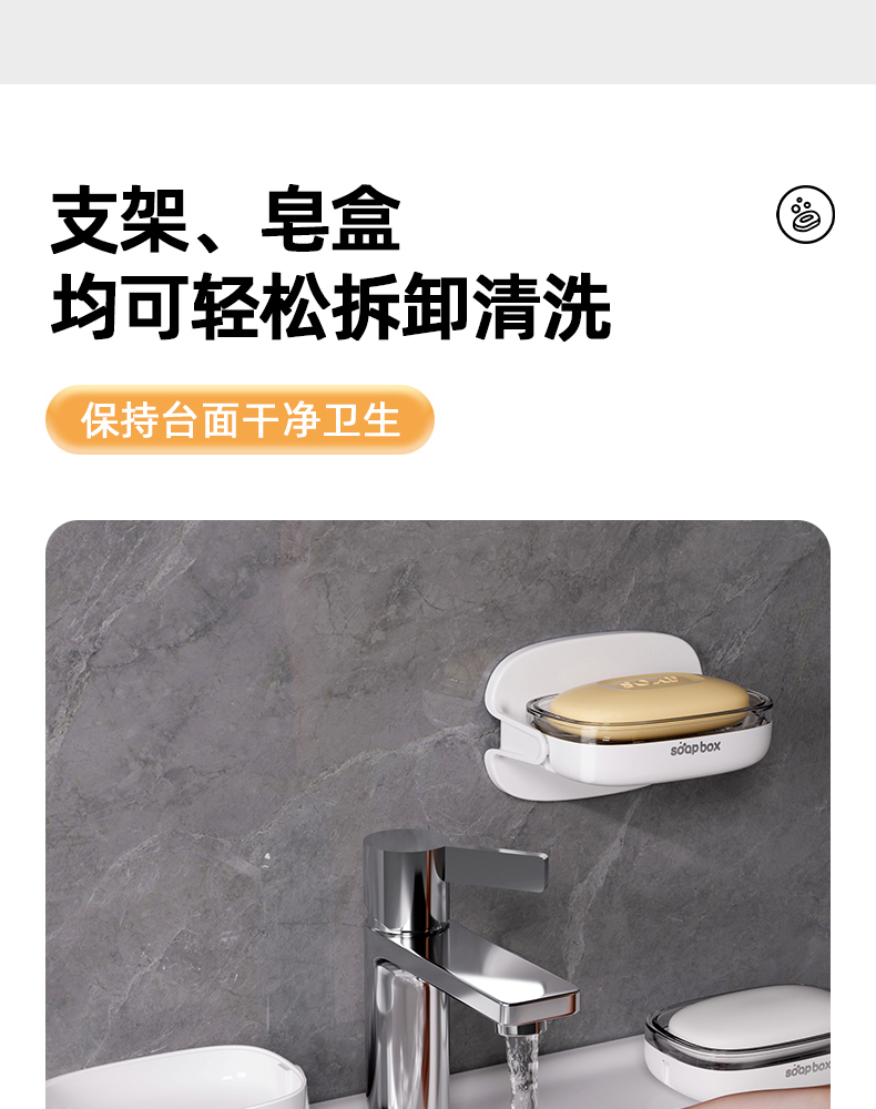 D 家居肥皂盒 免打孔肥皂盒壁挂式家用高档卫生间沥水香皂置物架香皂盒