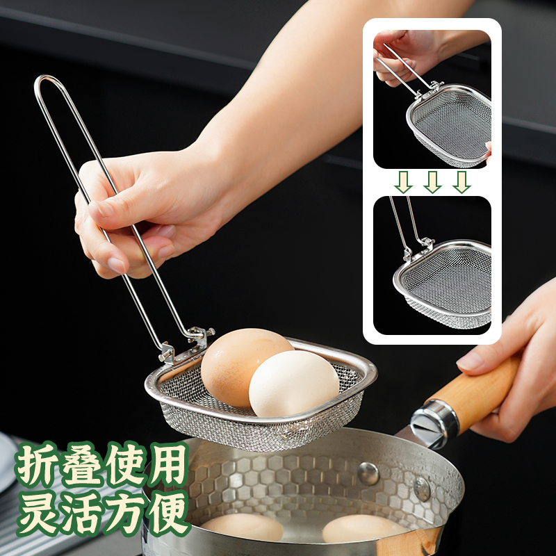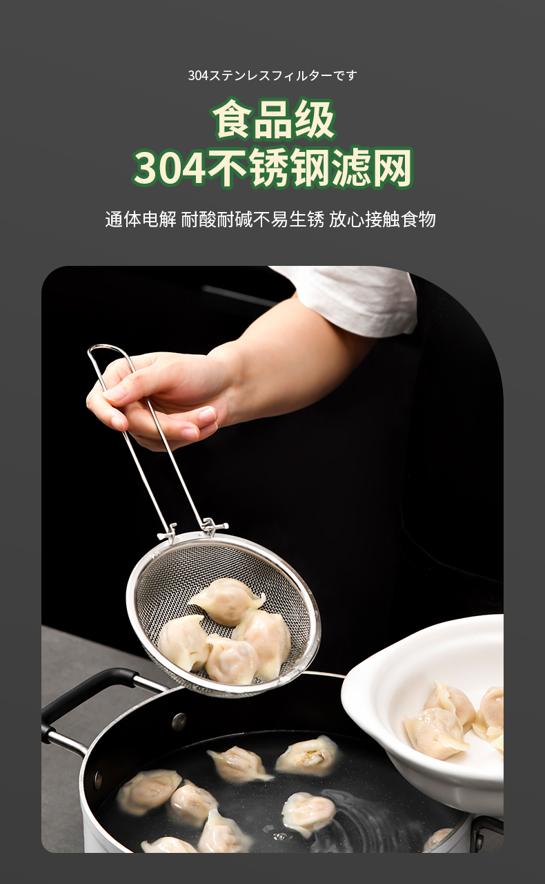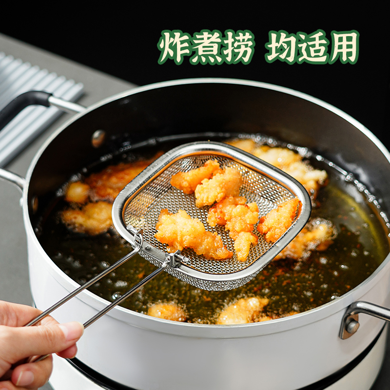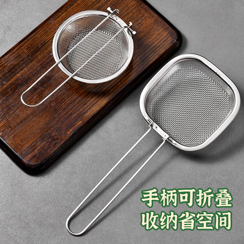 可折叠捞勺(圆形)大号 304不锈钢捞勺过滤网油炸可折叠捞面漏勺捞篱笊篱细网