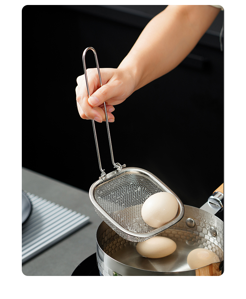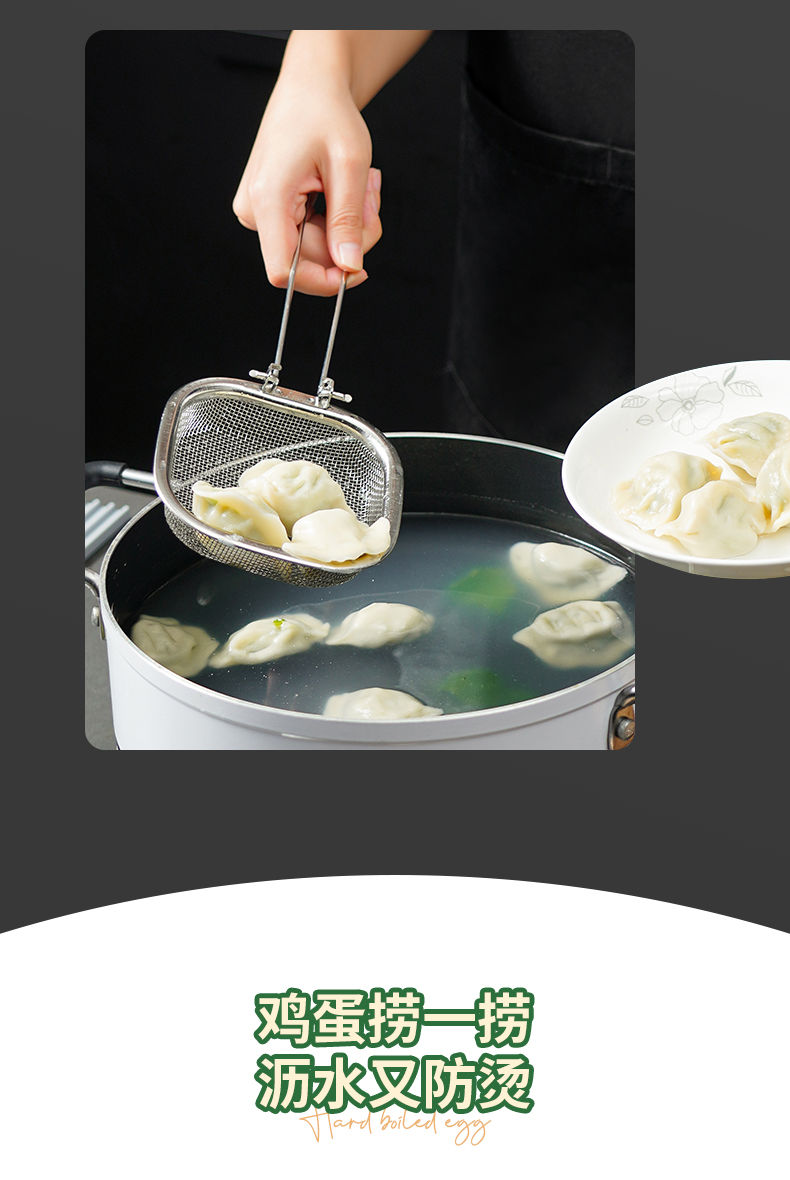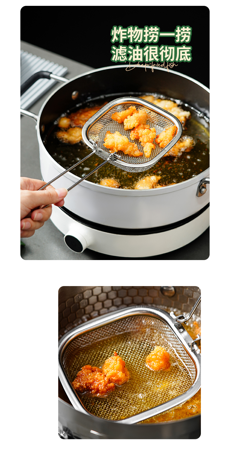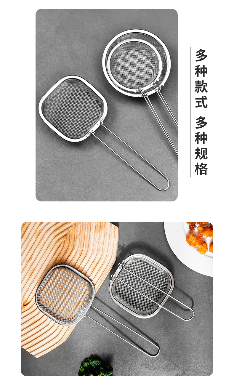 可折叠捞勺(圆形)大号 304不锈钢捞勺过滤网油炸可折叠捞面漏勺捞篱笊篱细网