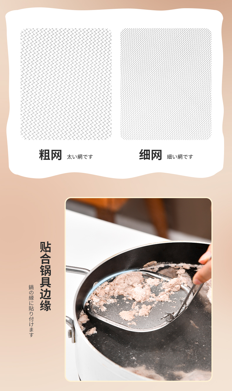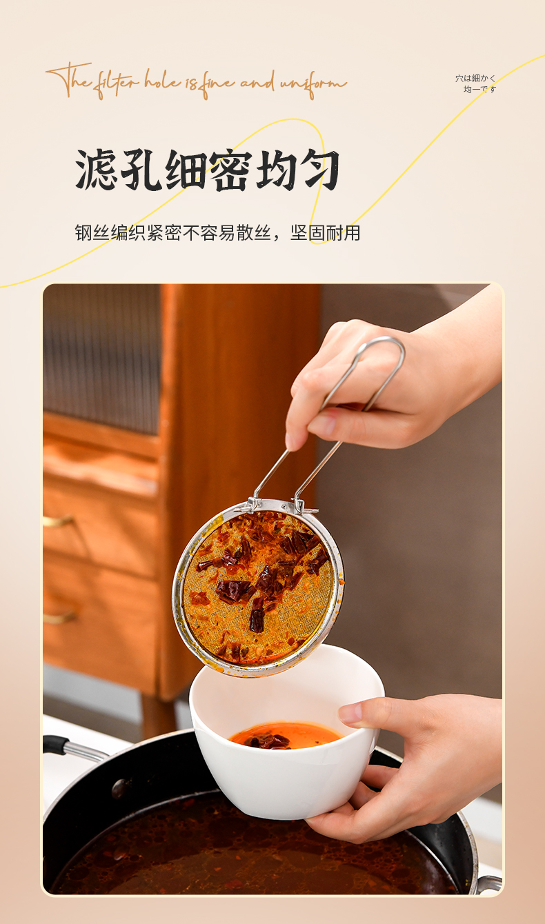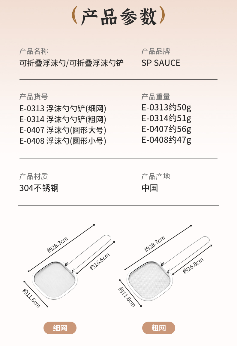 D 可折叠浮沫勺铲(细网) 打沫漏勺家用厨房不锈钢过滤网筛火锅去除撇浮沫捞勺隔油勺