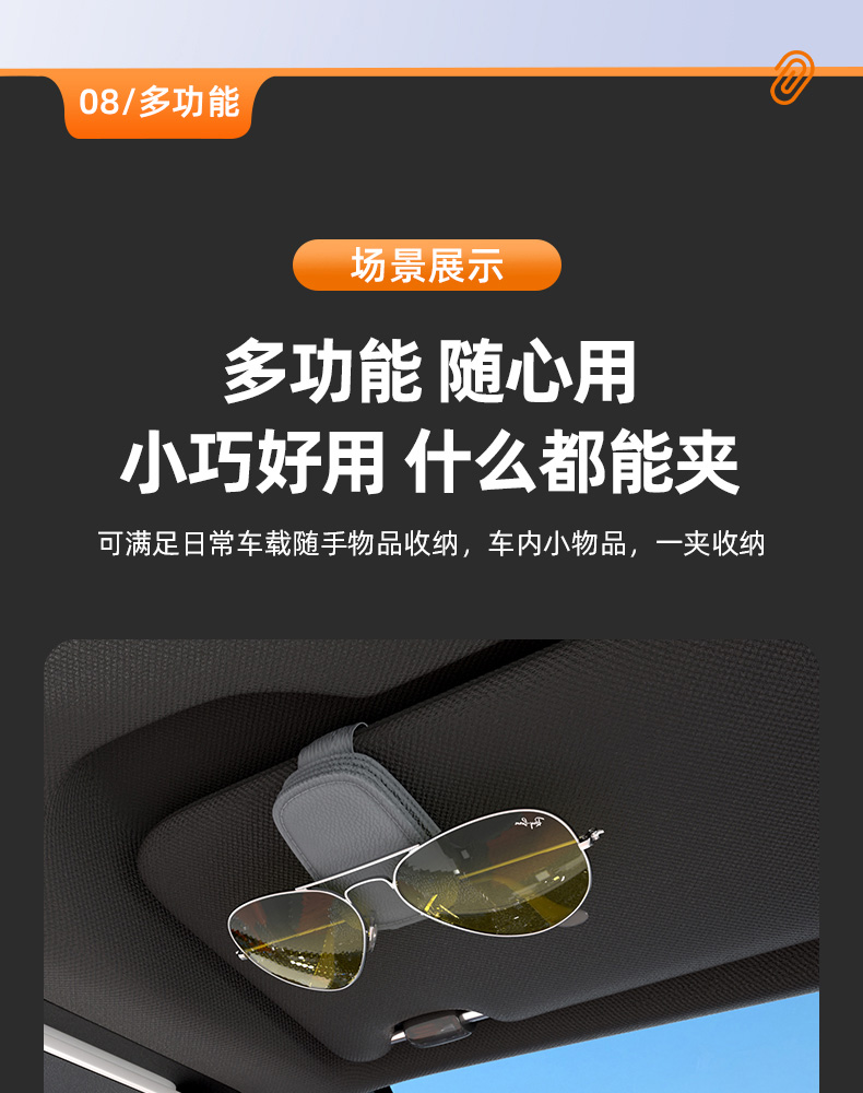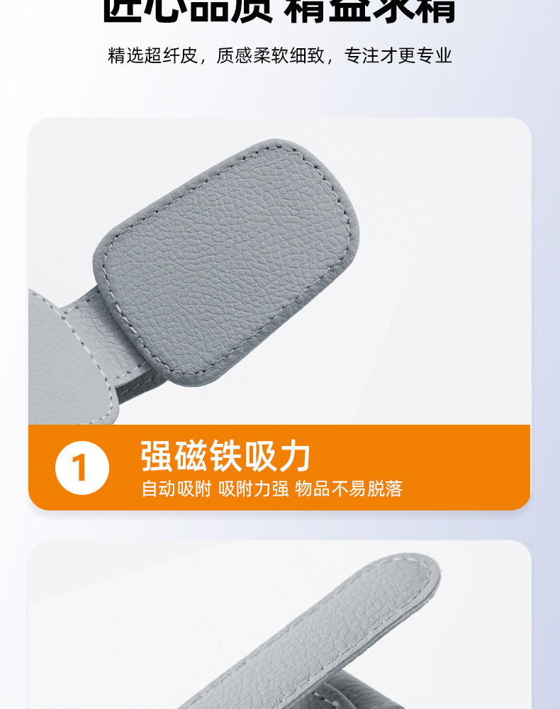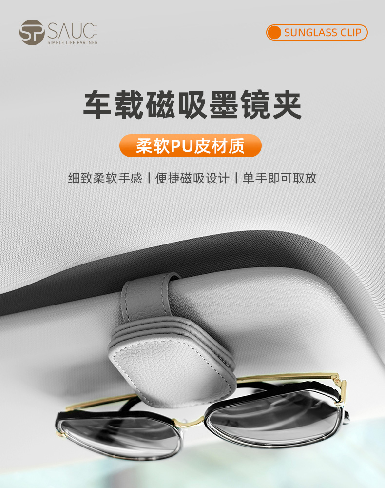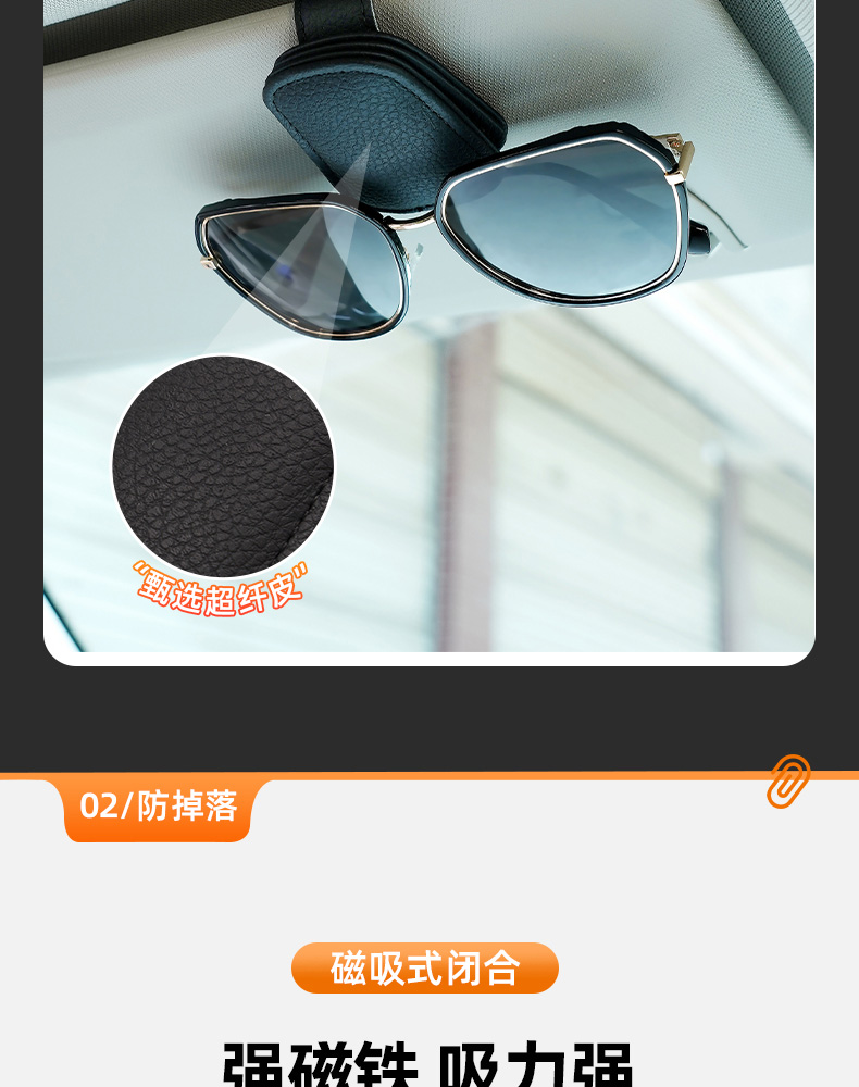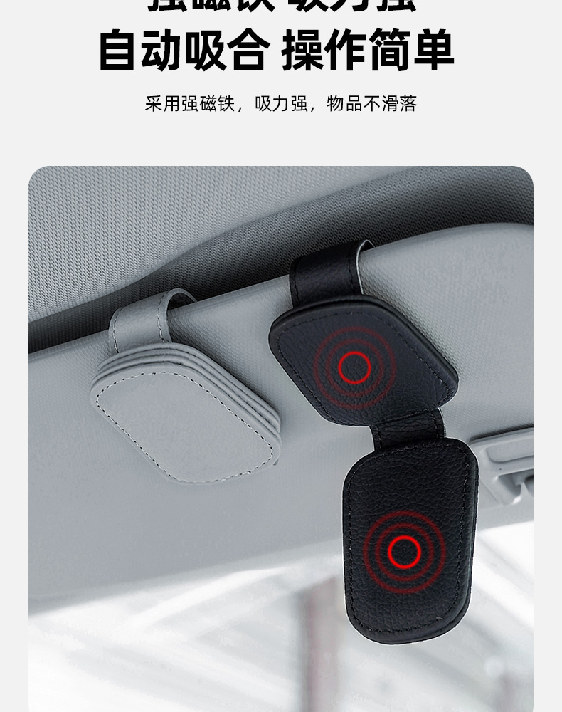 车载磁吸墨镜夹 多功能车载眼镜夹汽车眼镜架皮革车内遮阳板收纳盒车用墨镜夹卡夹