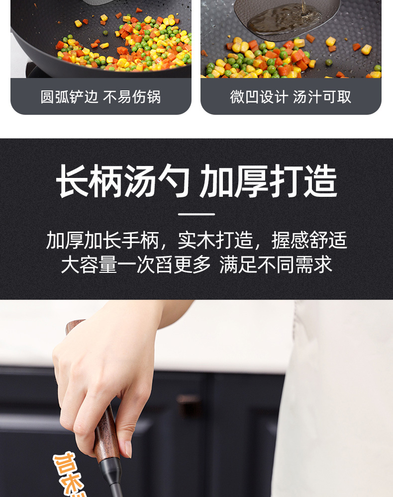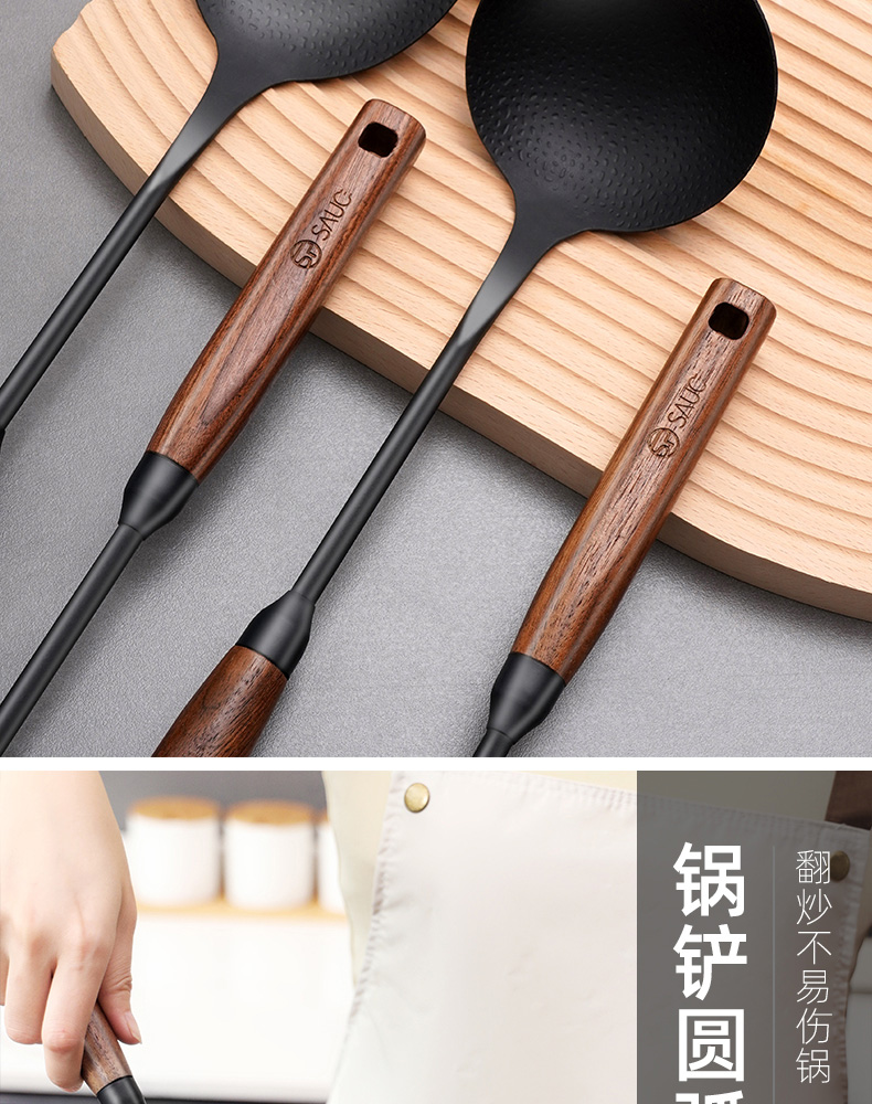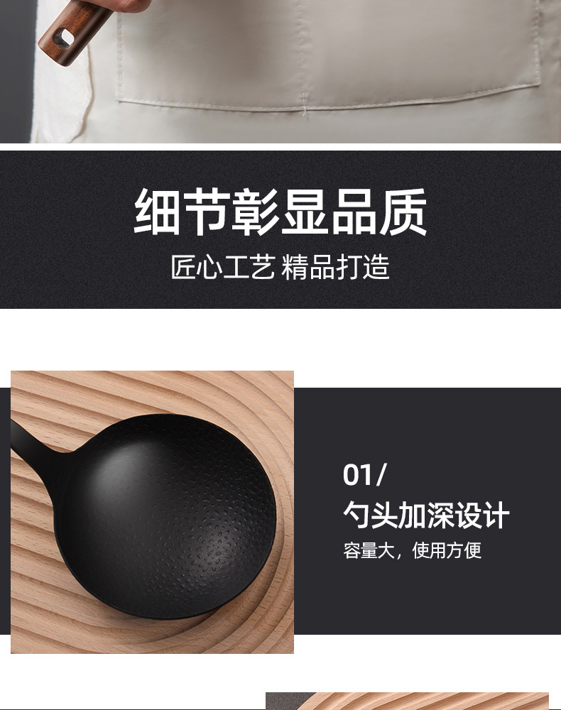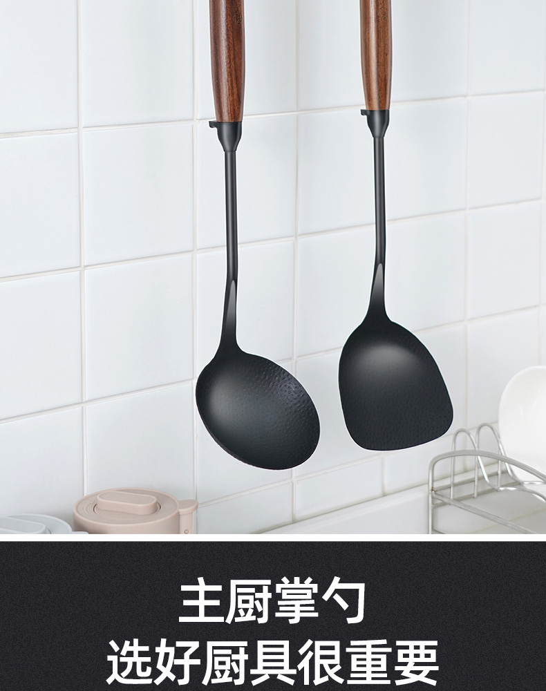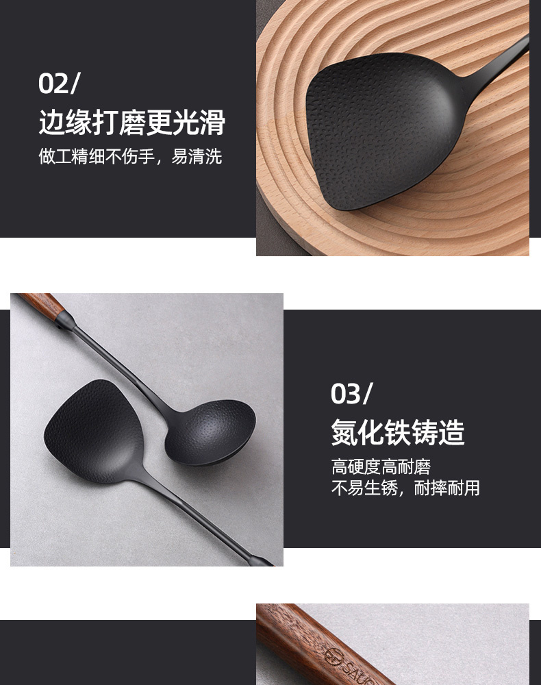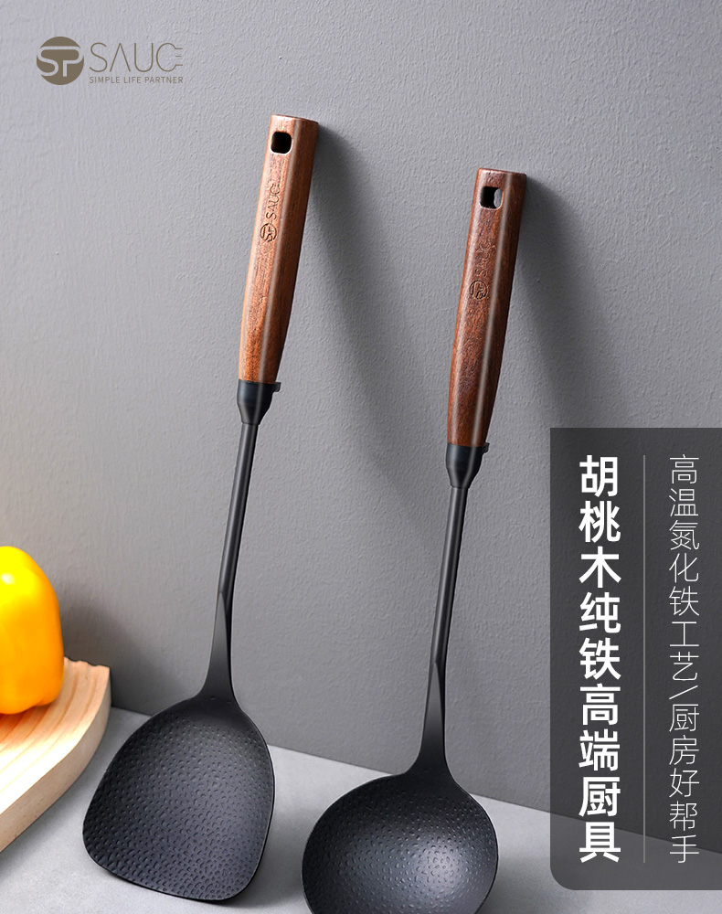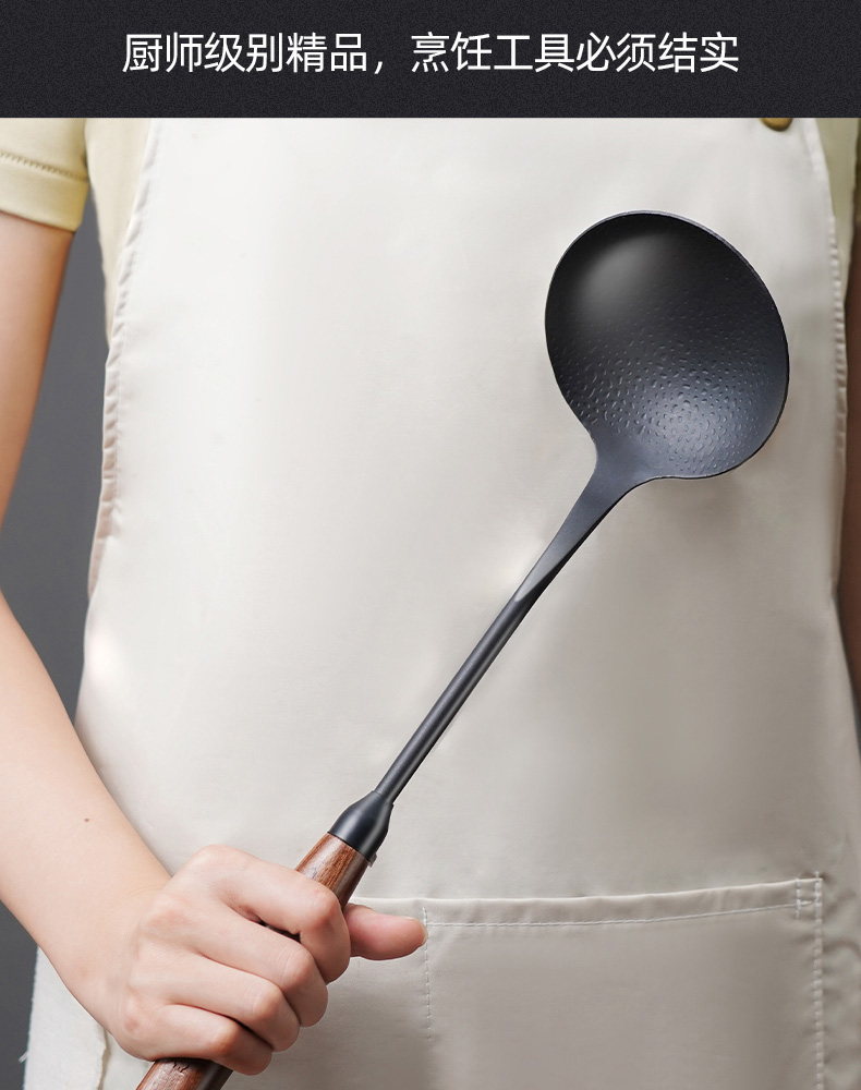 氮化汤勺 铸铁锅铲家用木柄铁铲不粘锅专用厨具汤勺炒菜铲子