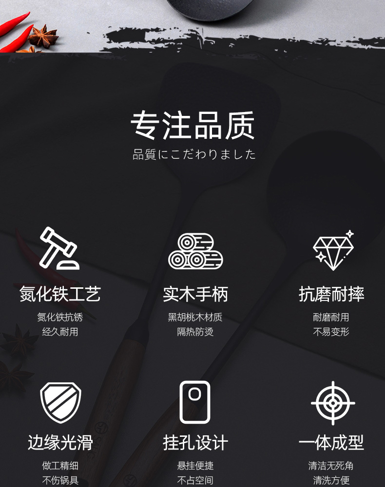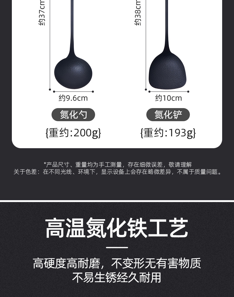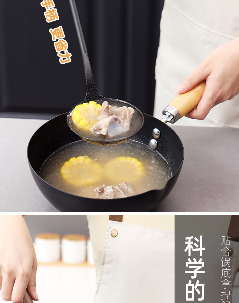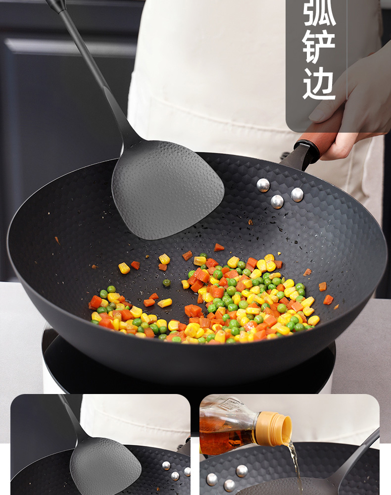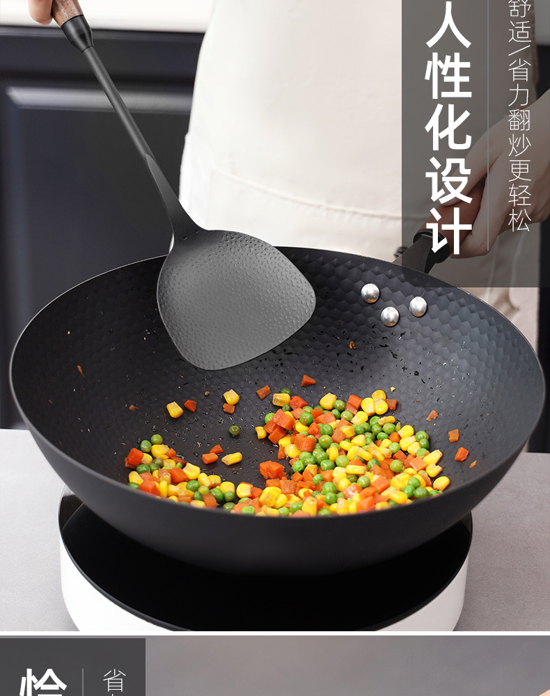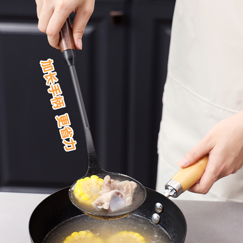 氮化锅铲 铸铁锅铲家用木柄铁铲不粘锅专用厨具汤勺炒菜铲子
