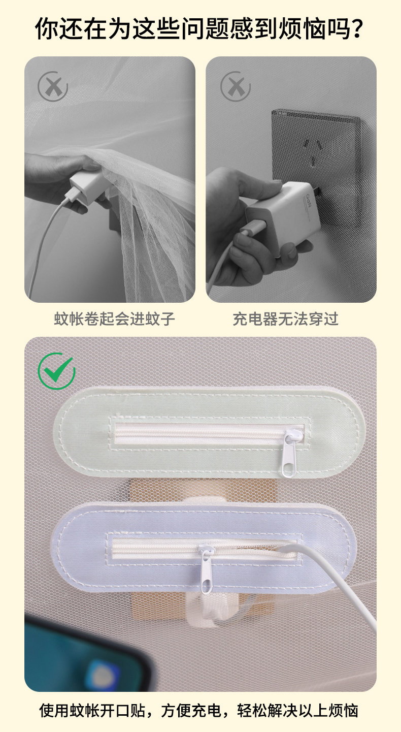 蚊帐开口贴(短款) 蚊帐充电口魔术贴手机数据线宿舍学生宿舍蚊帐免拉链充电封口神器