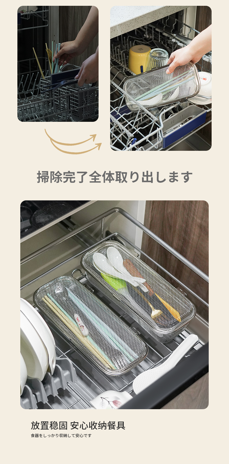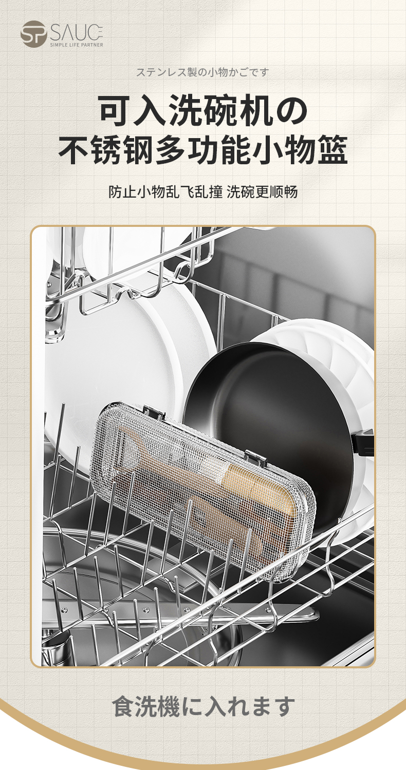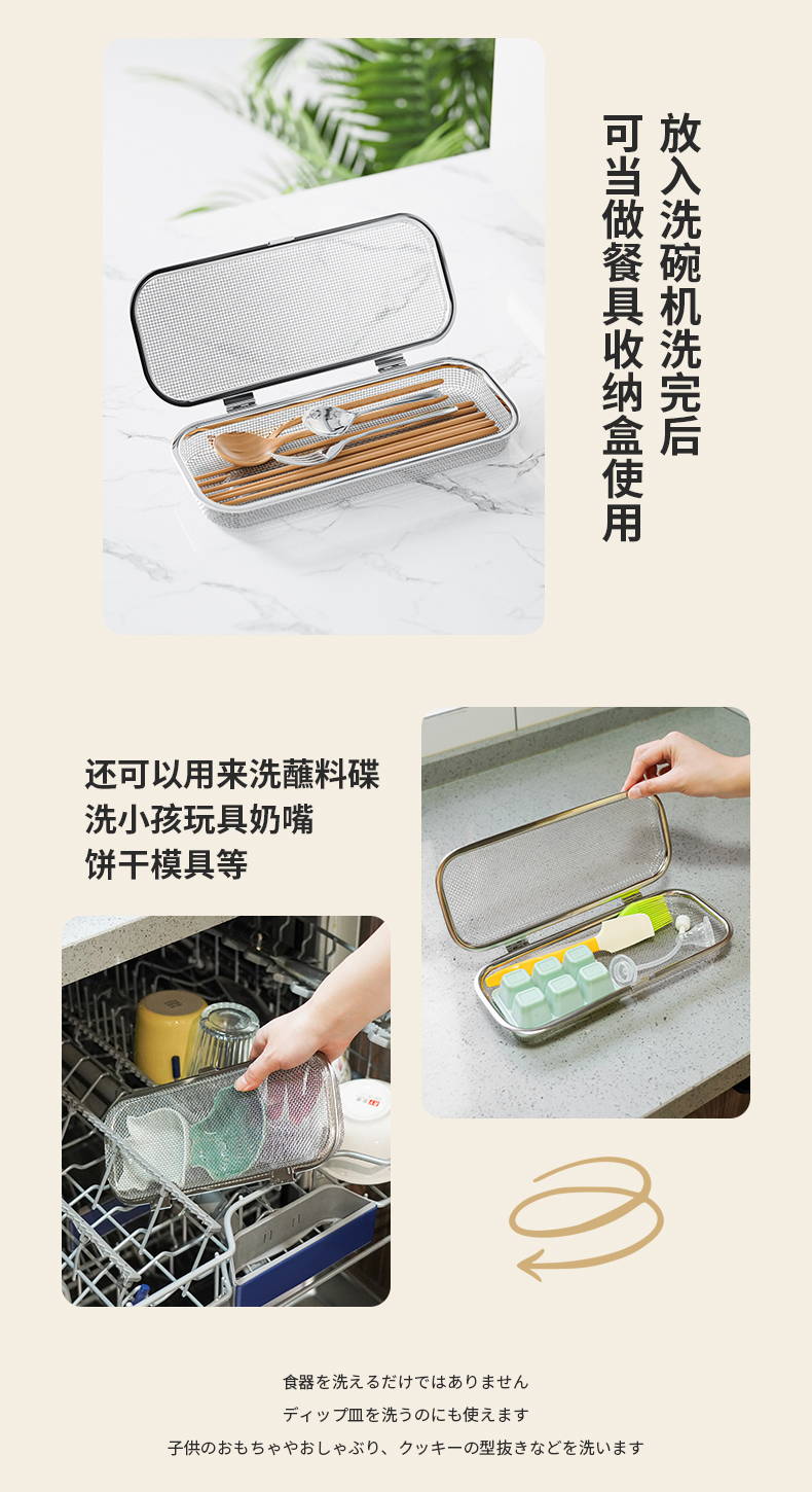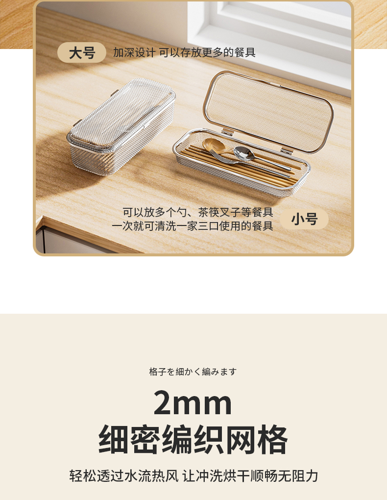 不锈钢多功能小物篮(大号) 304不锈钢网餐具盒清洗篮洗碗机用小物篮厨房工具勺筷清洁篮