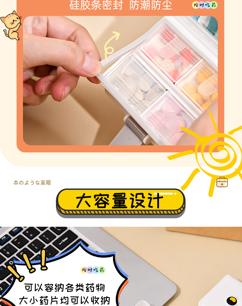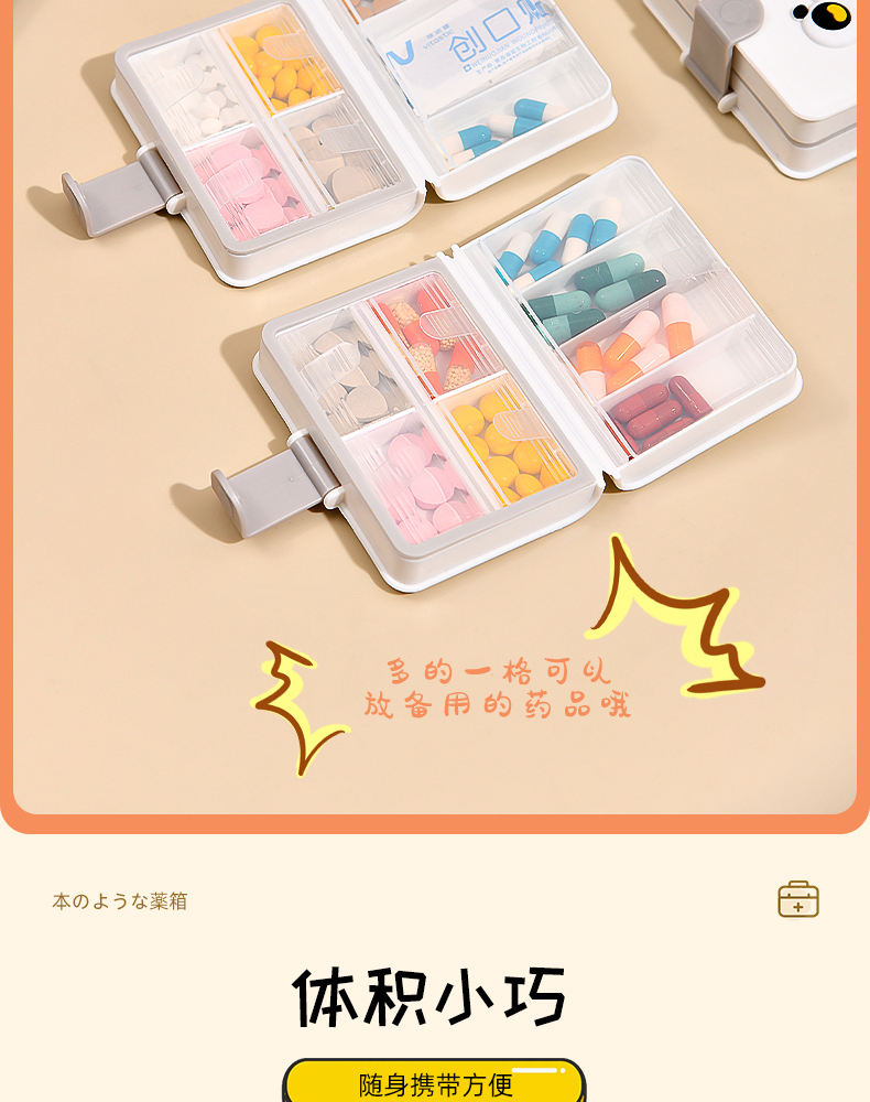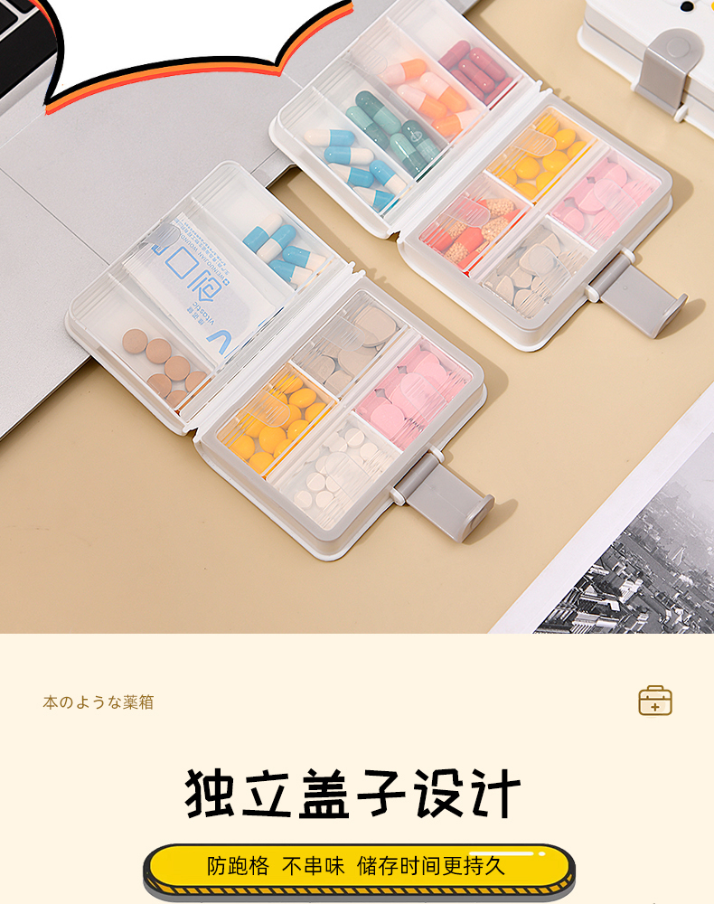书本药盒(软胶表情贴另拍) 便携药盒一周七天分装盒药片胶囊分类盒子迷你随身药物收纳盒