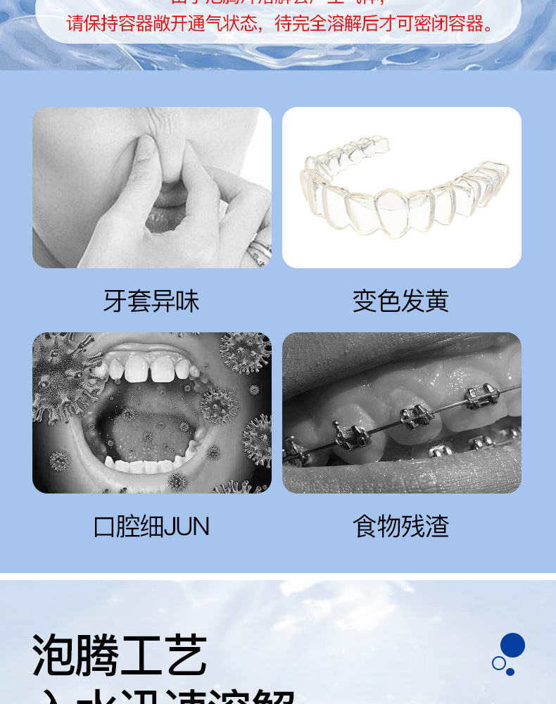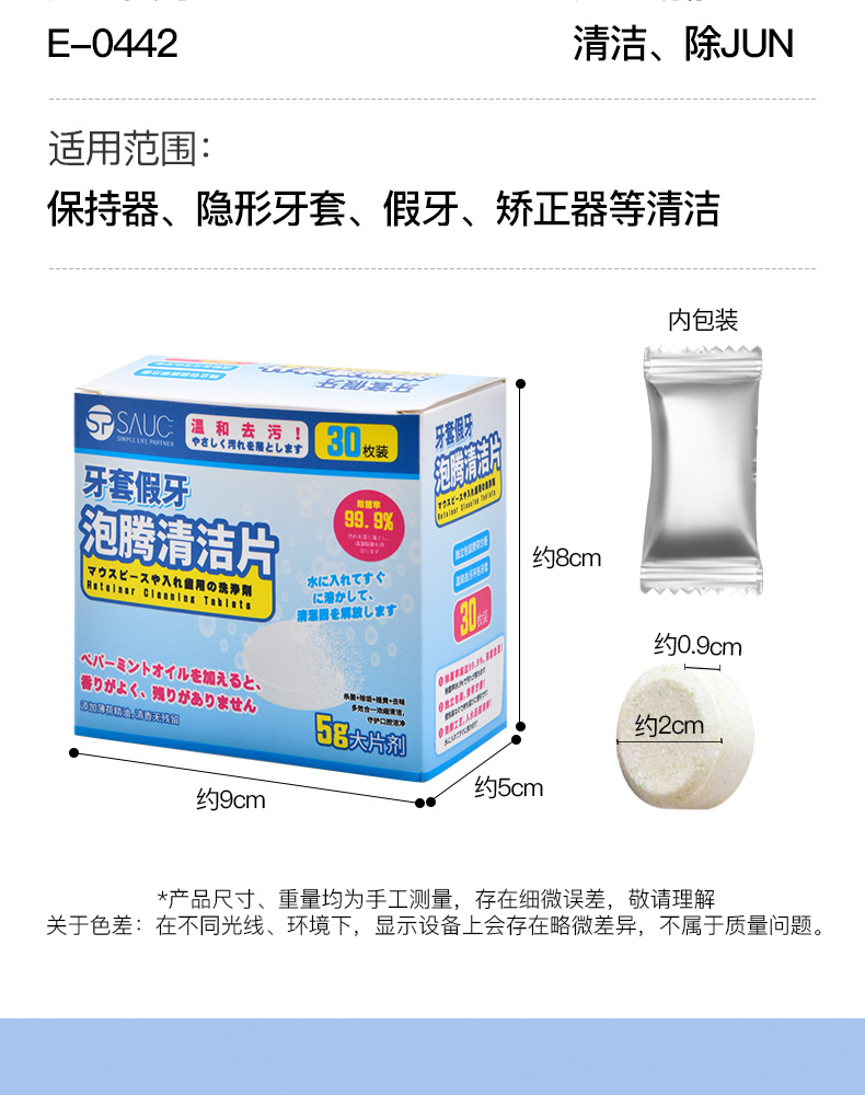 牙套假牙泡腾清洁片(30枚装) 正畸保持器隐形牙套泡腾清洁片牙齿矫正器清洁假牙神器清洗液