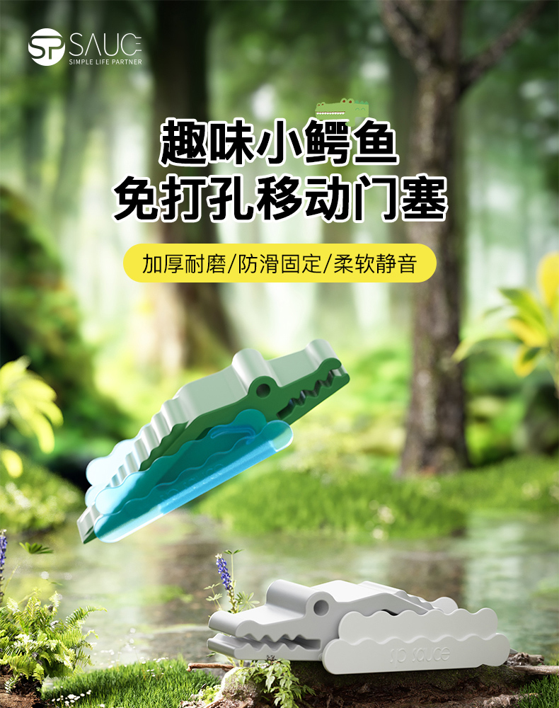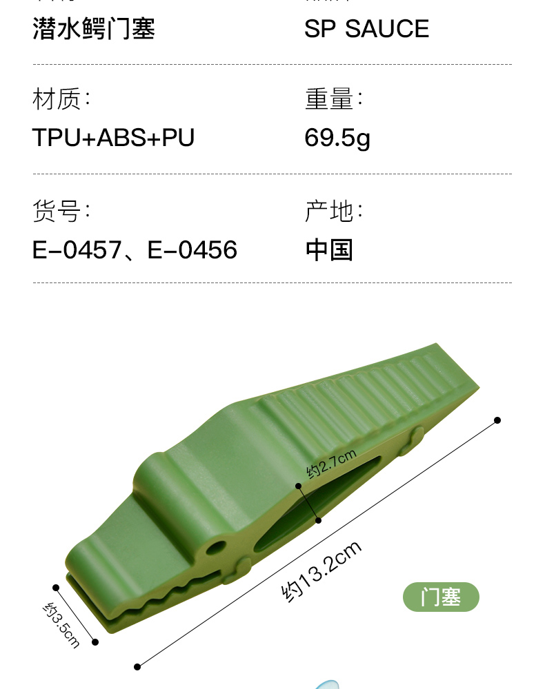 潜水鳄门塞 小鳄鱼门塞免打孔房门锁阻门器防撞门挡堵门器家用静音固定卡顶门器
