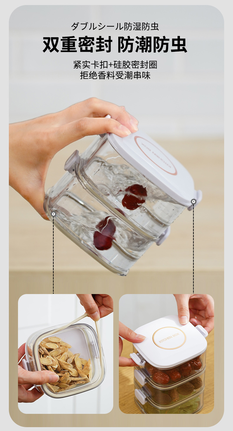 厨房香料盒(两层) 香料收纳盒厨房家用花椒大料储物盒密封罐佐料调味调料罐