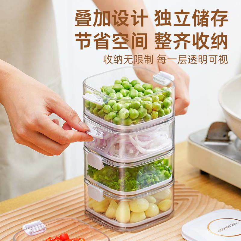 葱姜蒜收纳盒(四层) 葱姜蒜收纳盒厨房家用密封食品级放葱花收纳盒冰箱冷冻带盖备菜盒