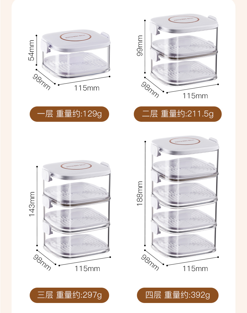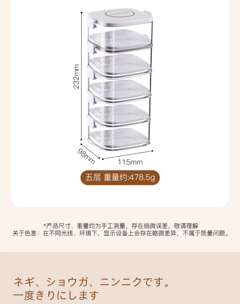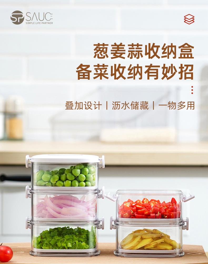 葱姜蒜收纳盒(五层) 葱姜蒜收纳盒厨房家用密封食品级放葱花收纳盒冰箱冷冻带盖备菜盒