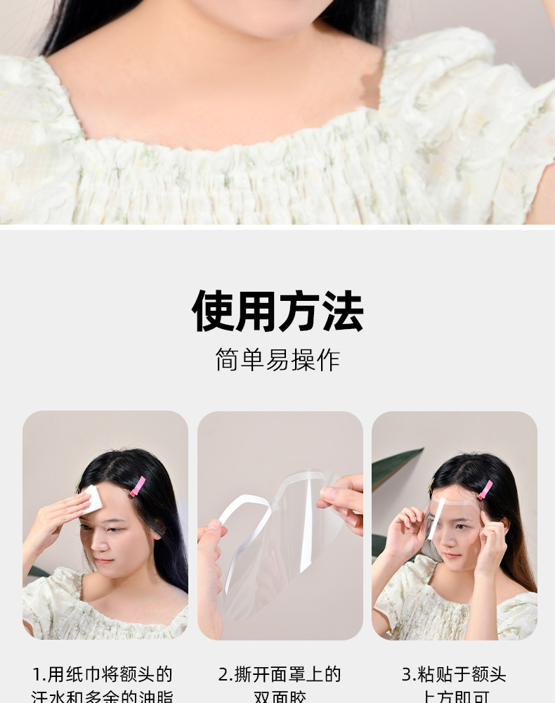 一次性透明面罩(20片装) 刘海贴一次性防碎发透明染发面罩理发剪发神器儿童额头遮脸挡板贴片