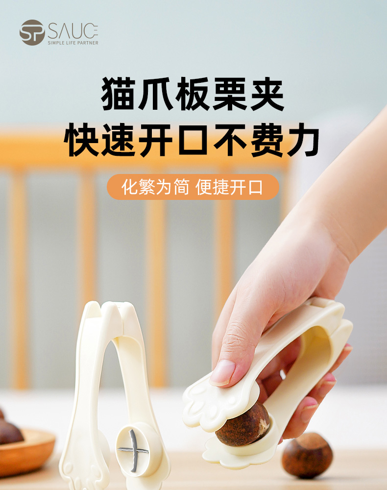 D猫爪板栗夹 猫爪板栗开口器板栗夹十字锯齿坚果剥壳器核桃夹家用去壳钳工具