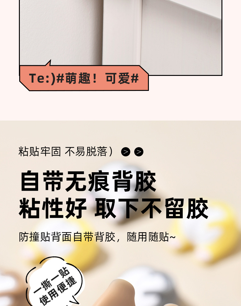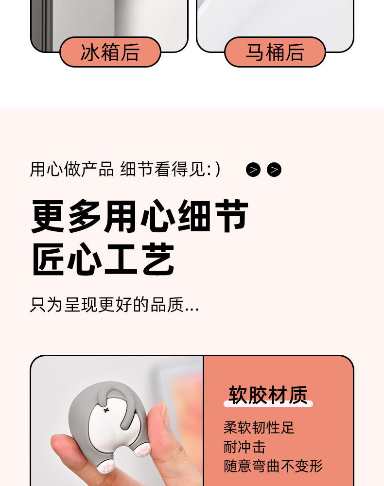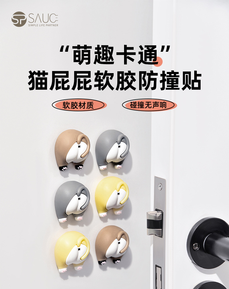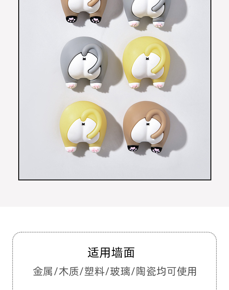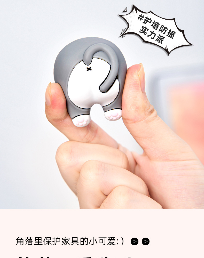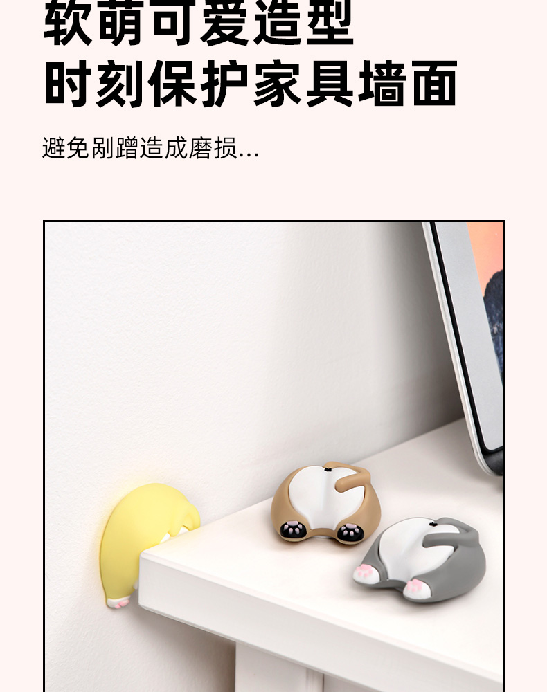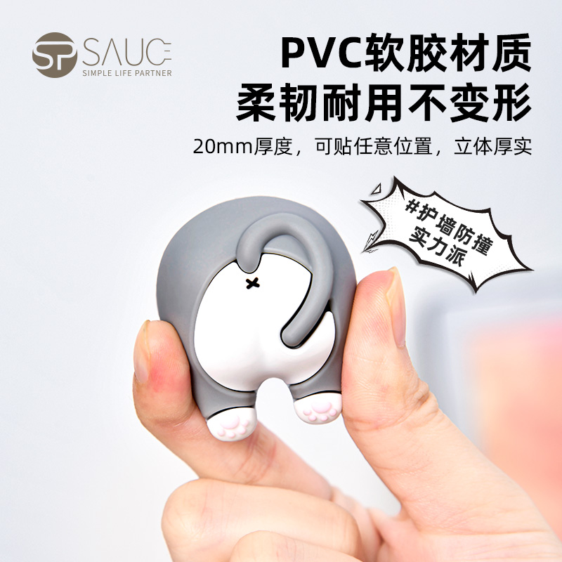 猫屁屁防撞贴3个装 猫屁屁防撞贴软胶垫门后柜门防磕碰冰箱卡通自粘防撞垫