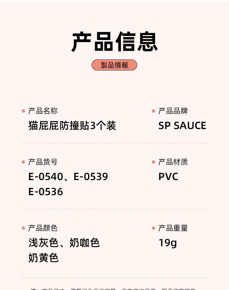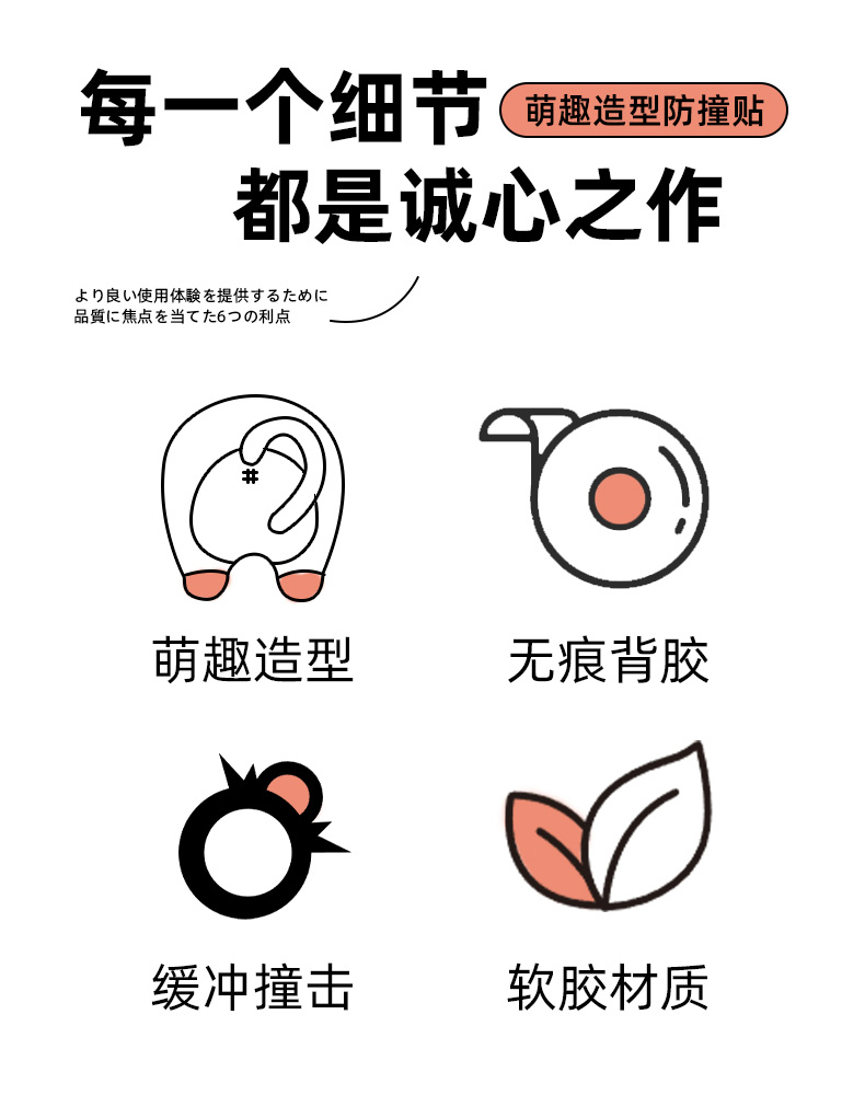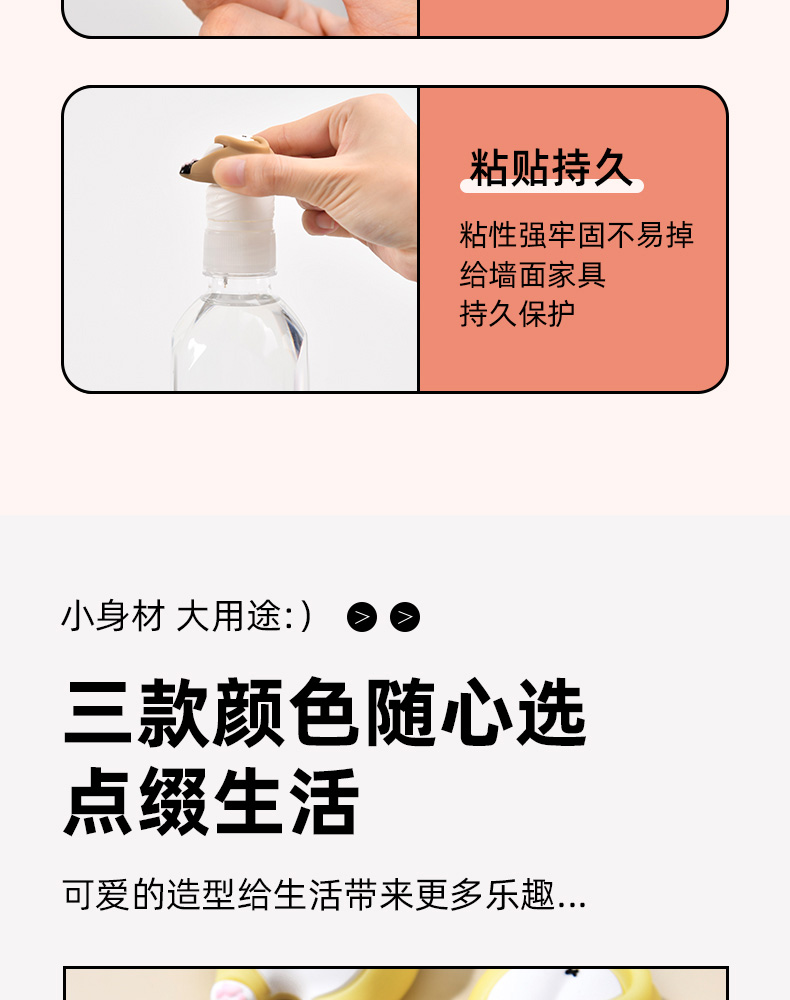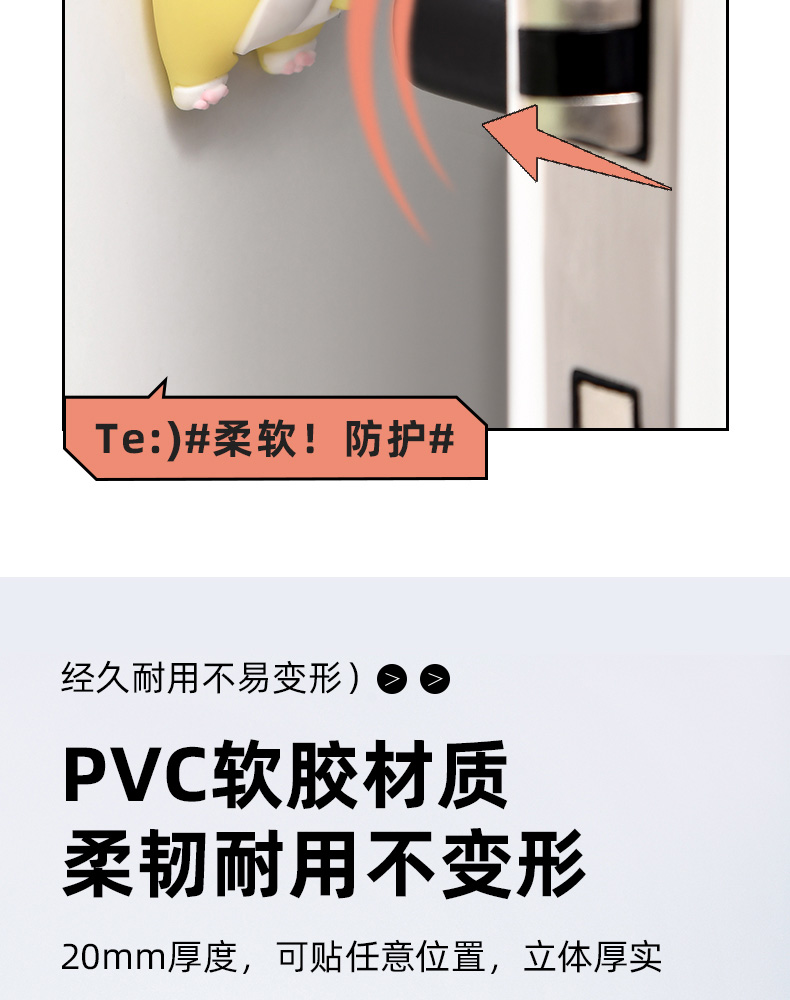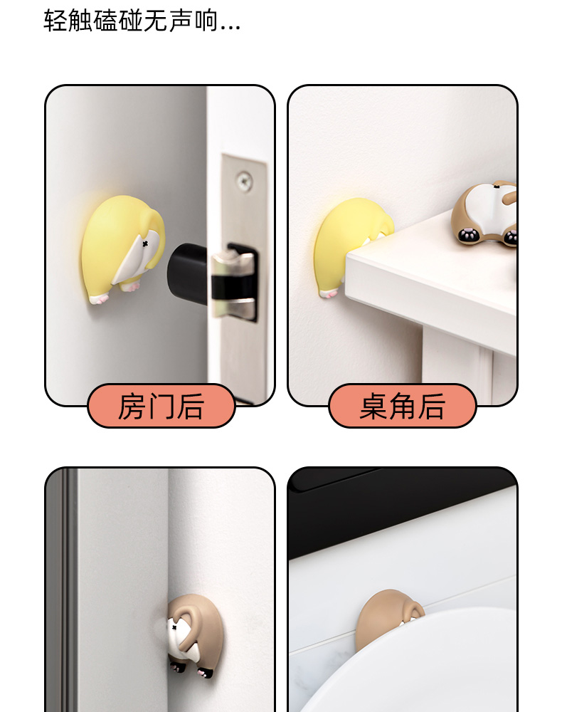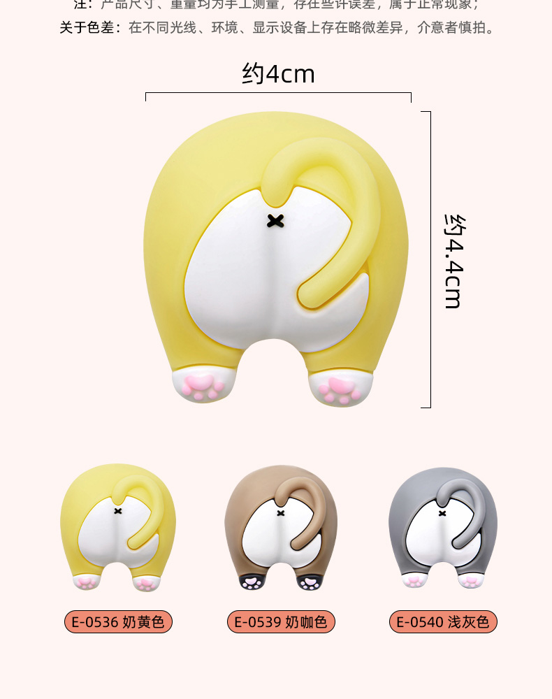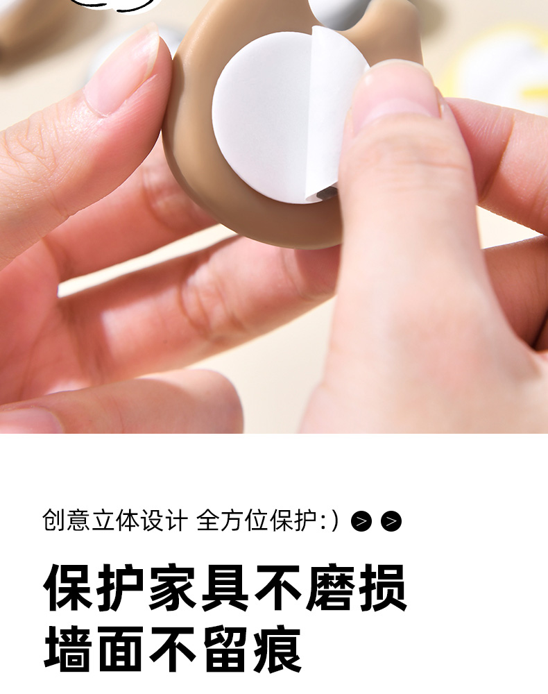 猫屁屁防撞贴3个装 猫屁屁防撞贴软胶垫门后柜门防磕碰冰箱卡通自粘防撞垫