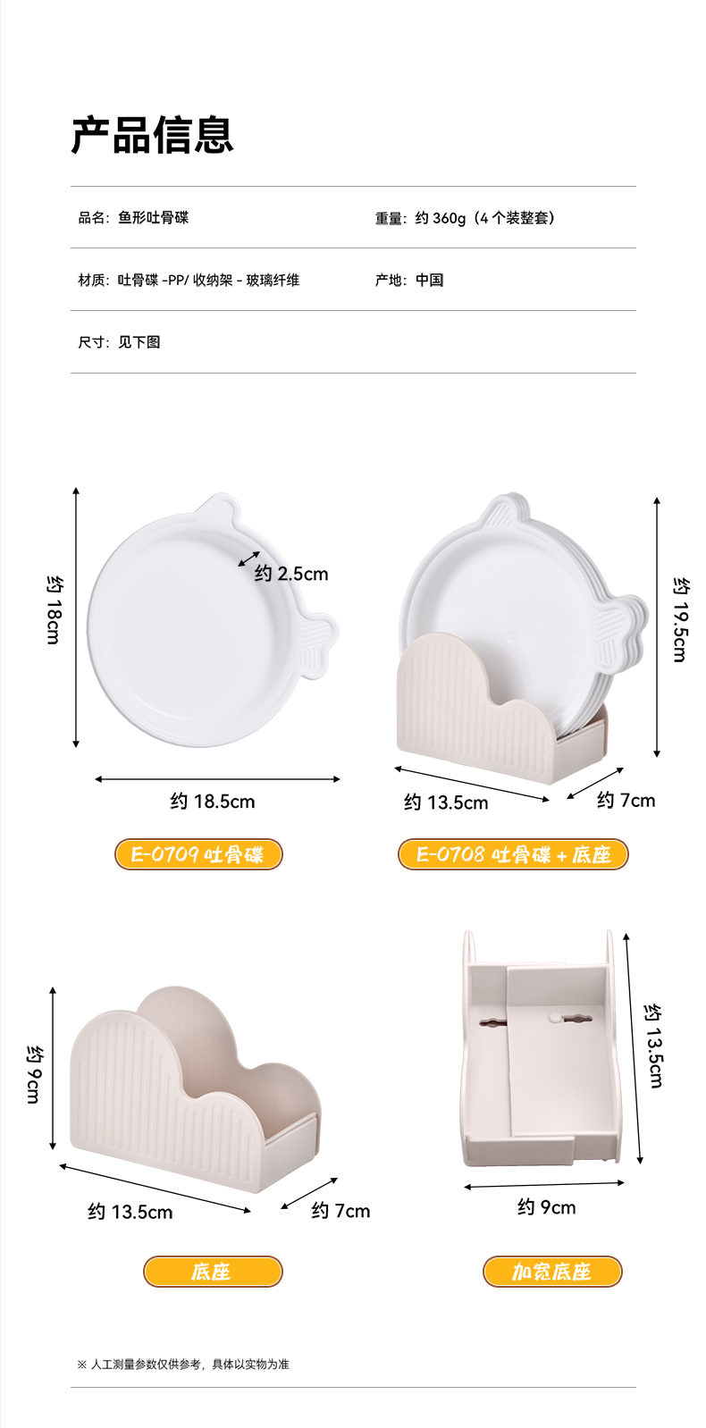 Subekyu鱼形吐骨碟(4个装) 吐骨碟家用食品级水果盘碟餐桌桌面收纳碟小菜碟垃圾盘碟