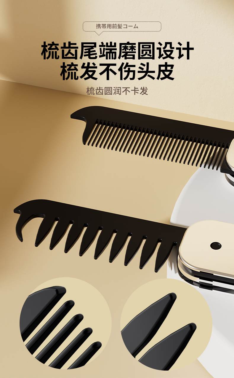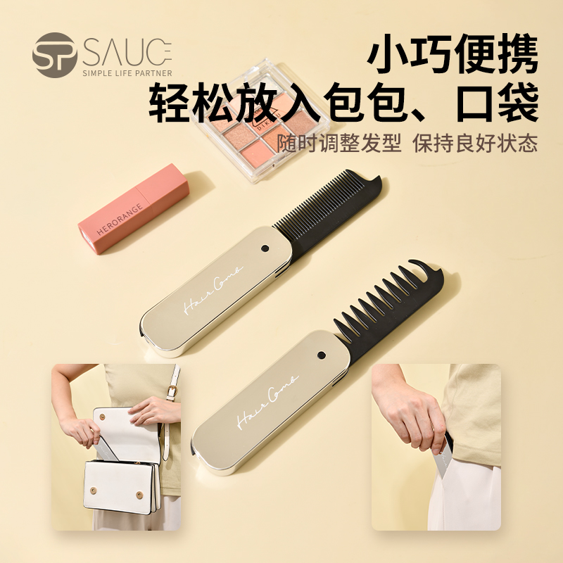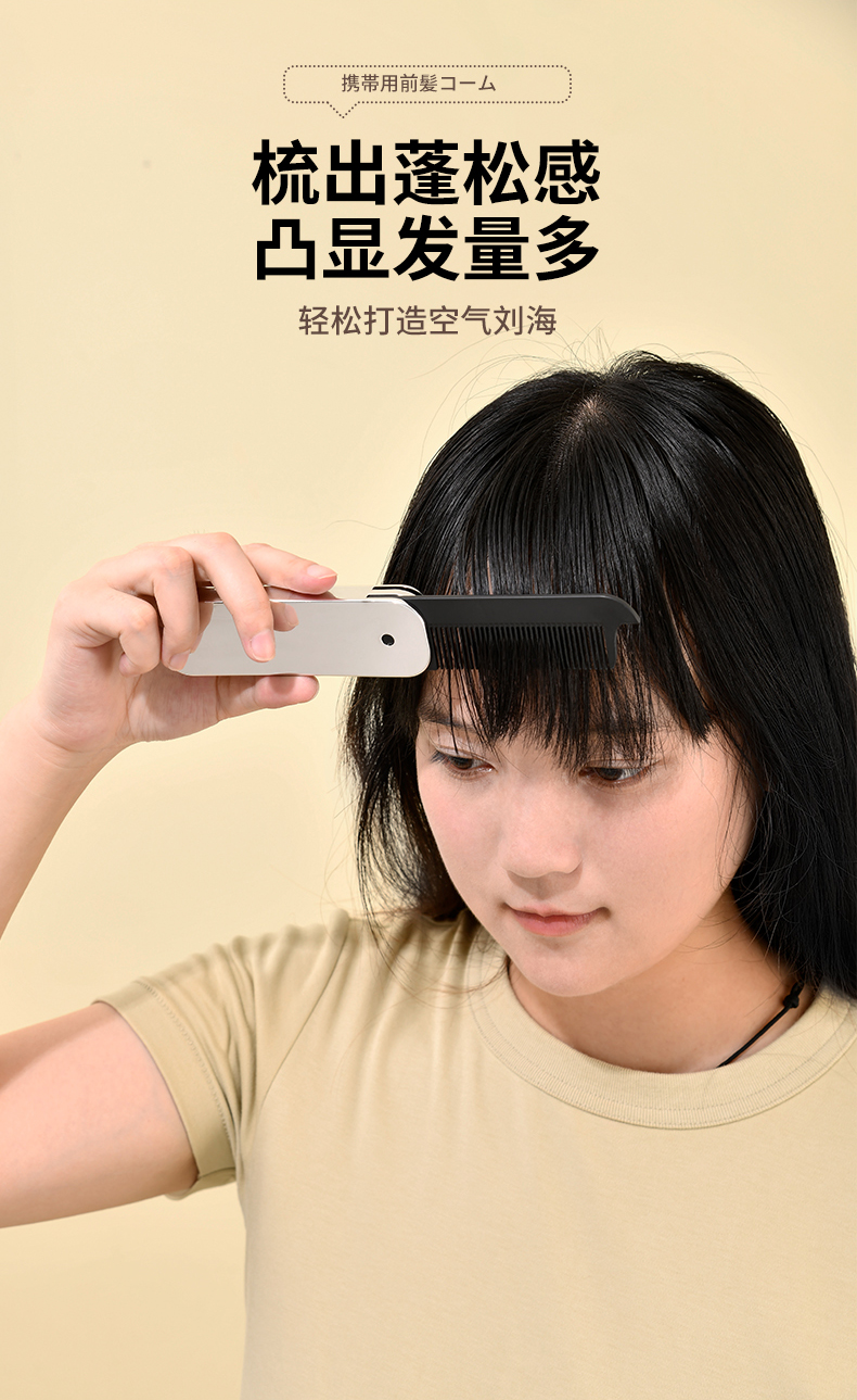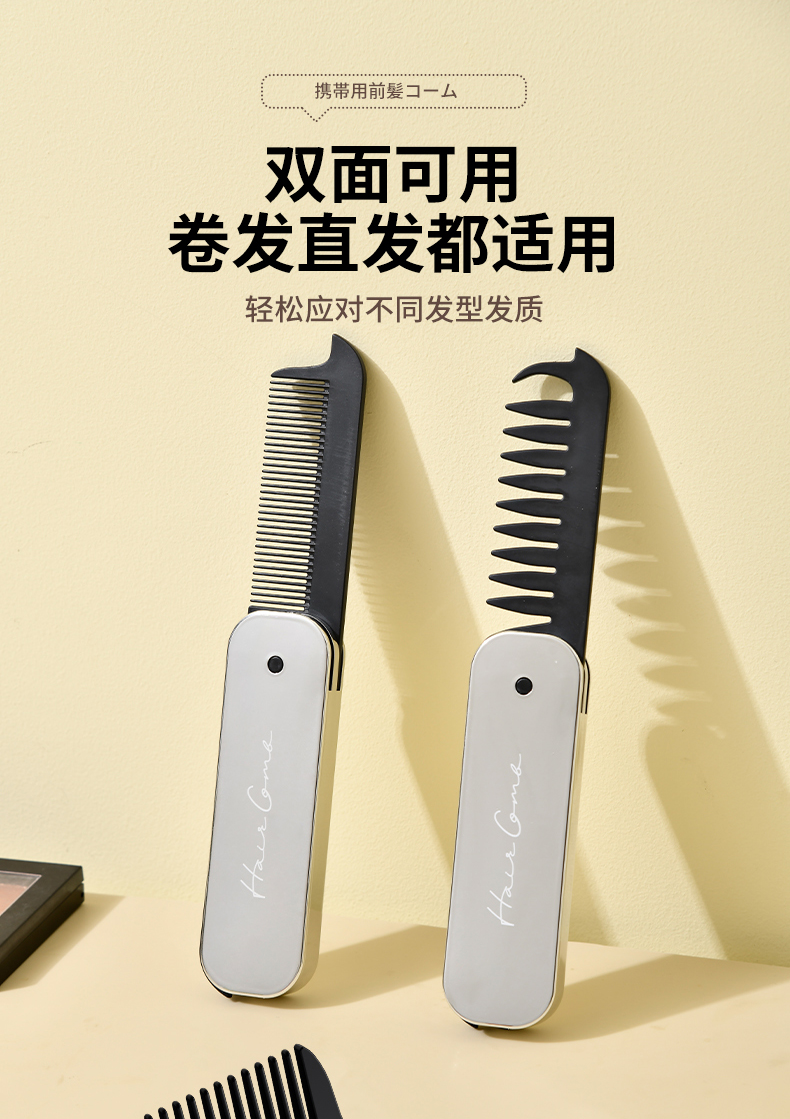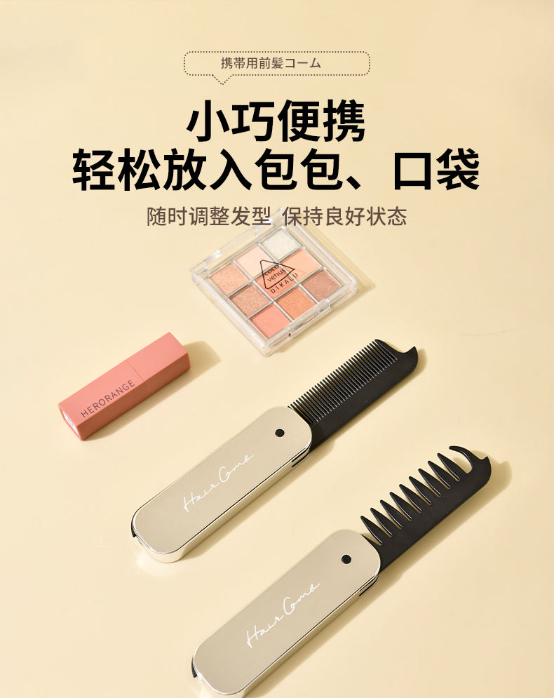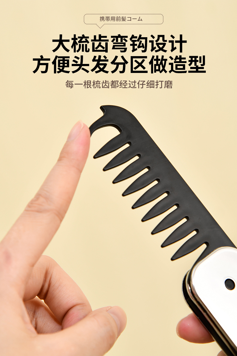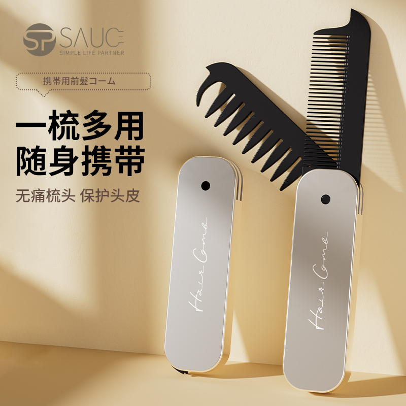 便携刘海梳 折叠梳子背头蓬松造型梳纹理定型旅行梳刘海女家用便携刘海随身携带小梳子