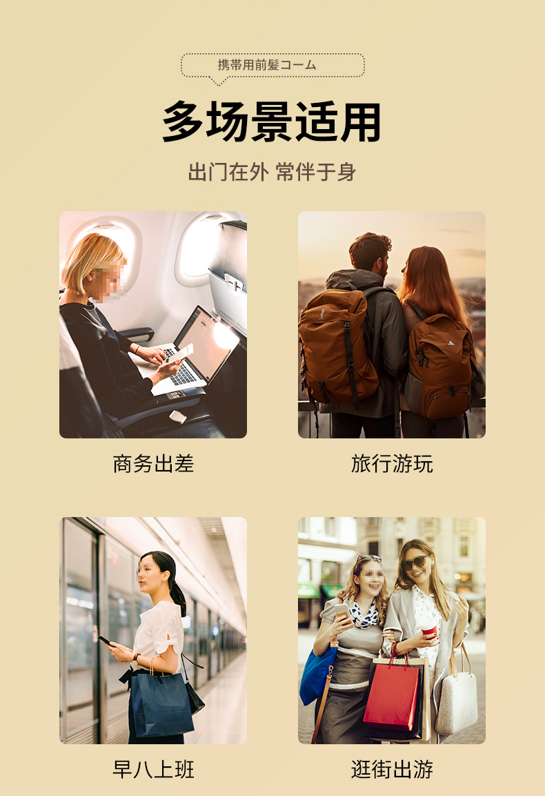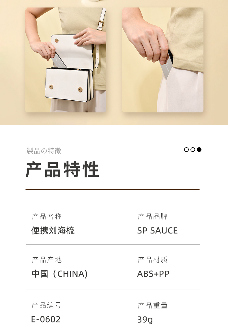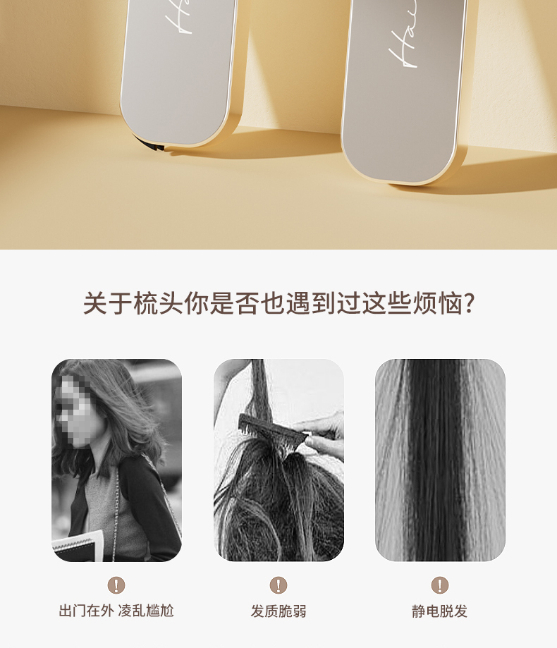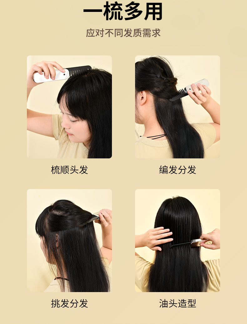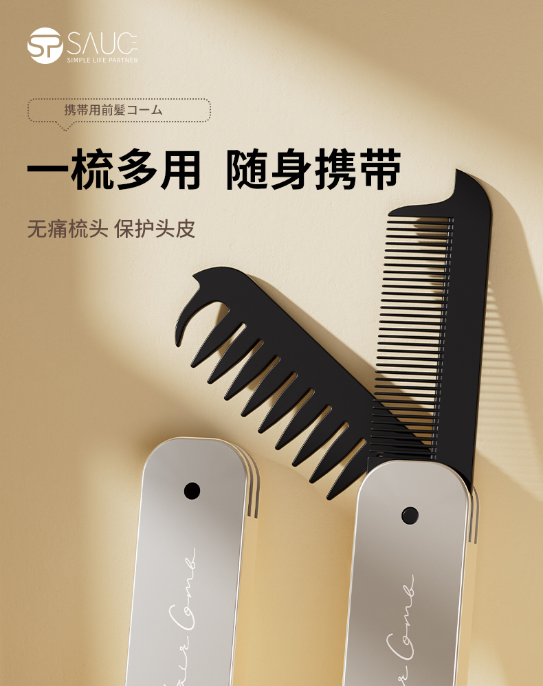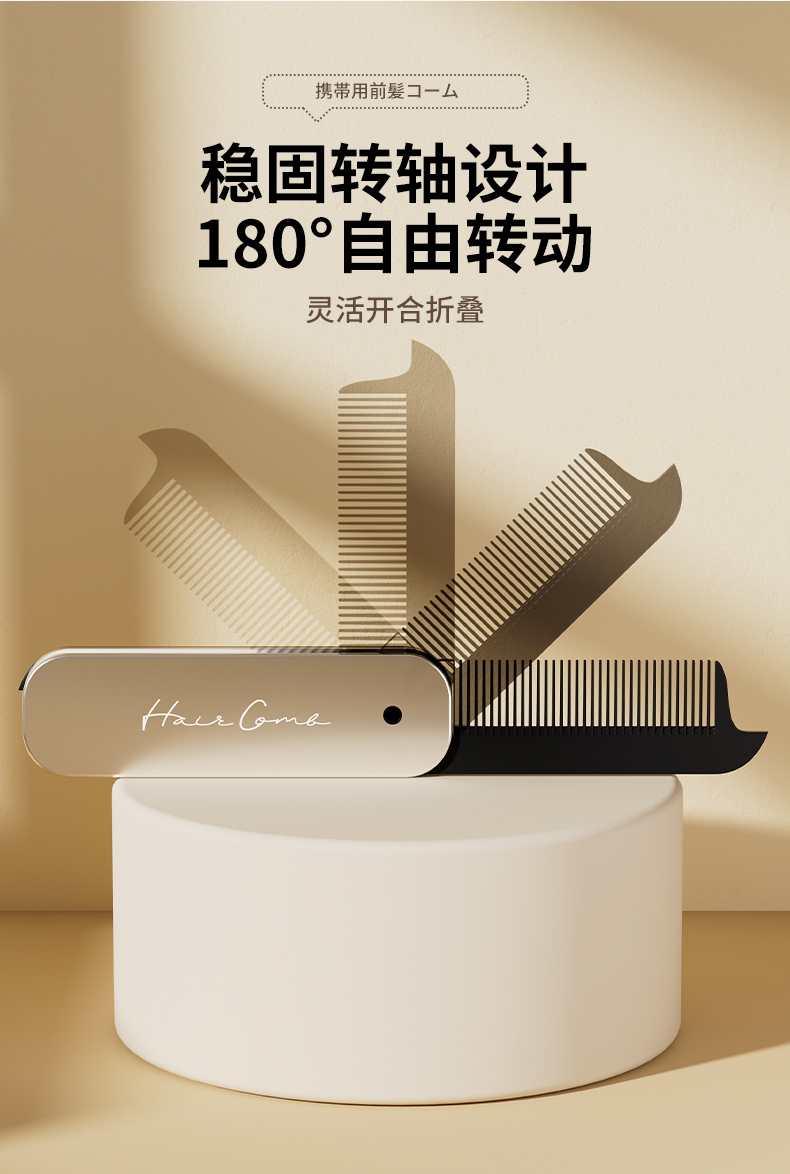 便携刘海梳 折叠梳子背头蓬松造型梳纹理定型旅行梳刘海女家用便携刘海随身携带小梳子