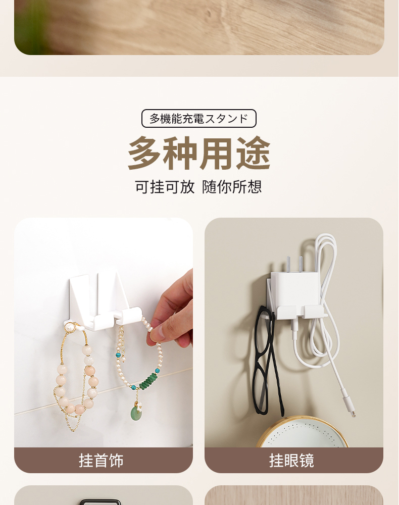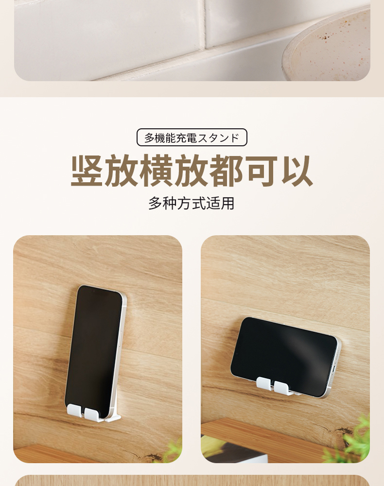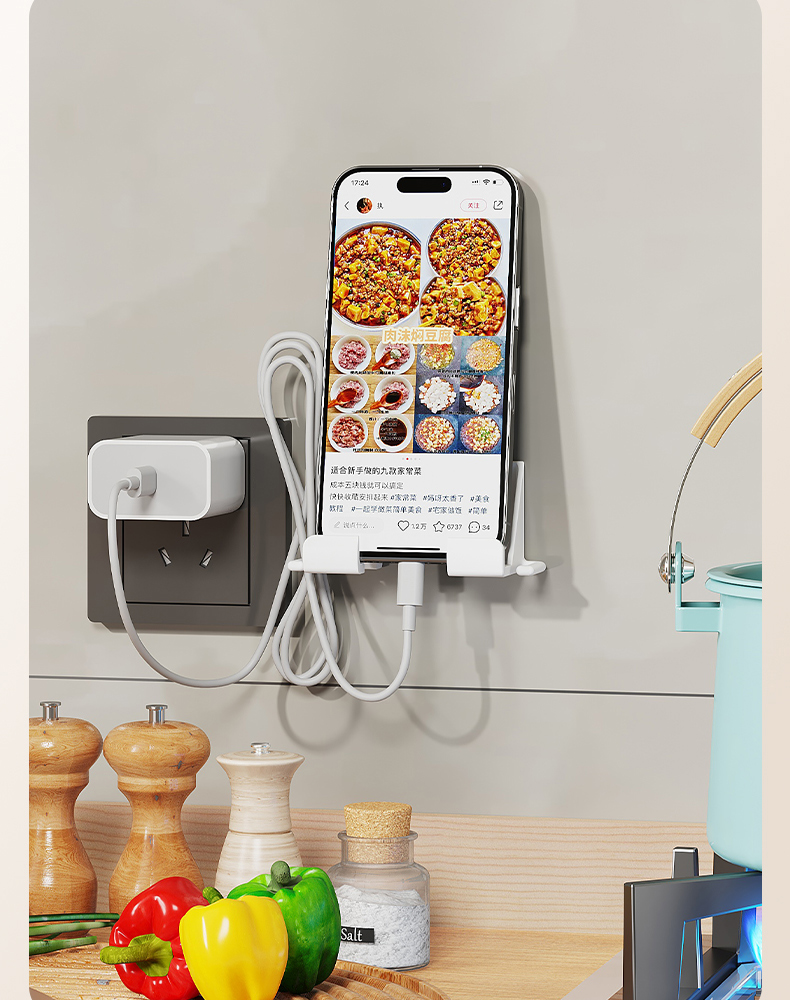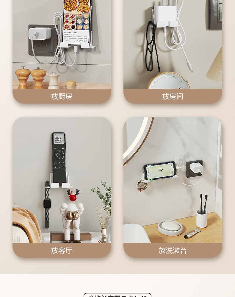 多功能镜柜挂壁支架(两对装) 壁挂式镜柜手机架免打孔追剧神器多功能手机充电支架墙面置物架