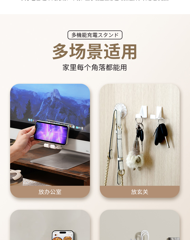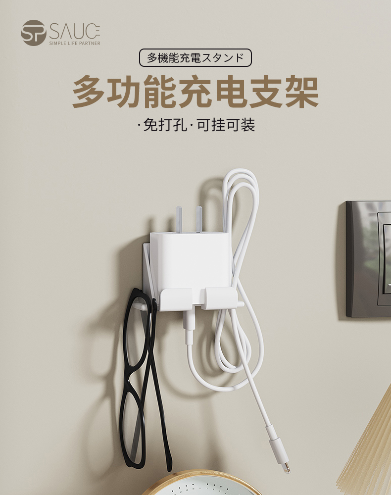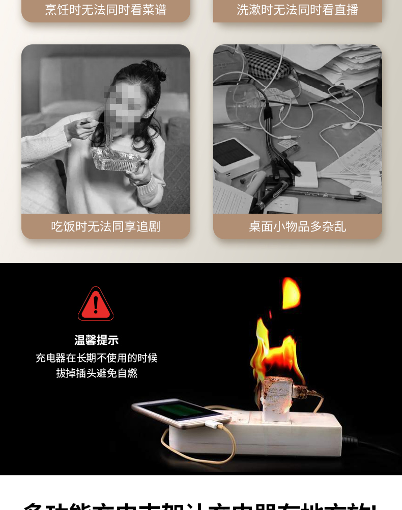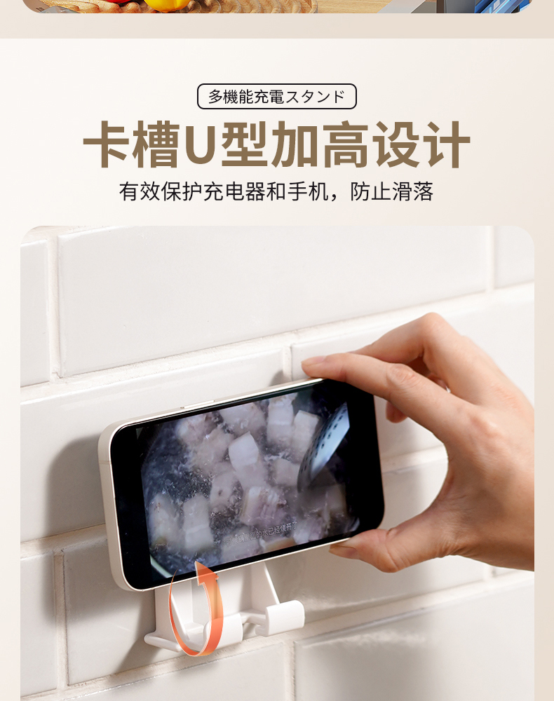 多功能镜柜挂壁支架(两对装) 壁挂式镜柜手机架免打孔追剧神器多功能手机充电支架墙面置物架