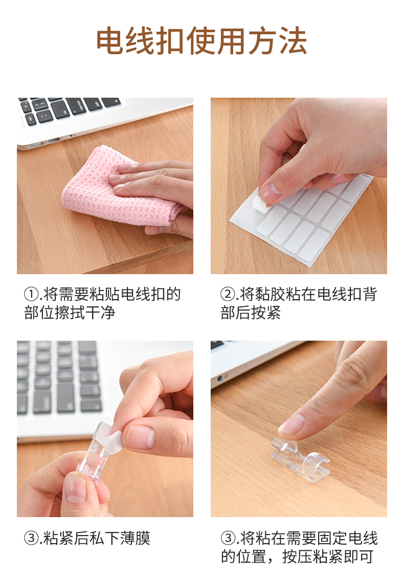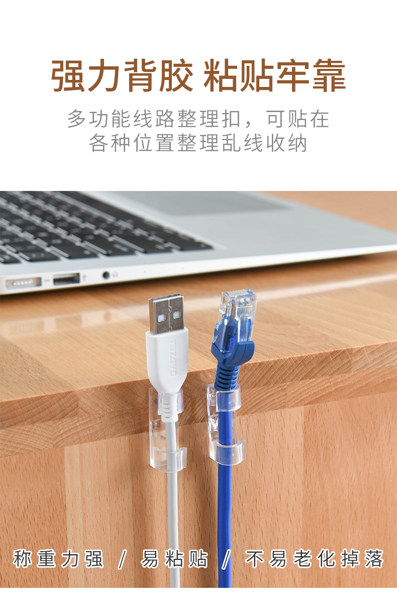 线路整理扣(20枚入) 自粘走线墙面电线理线器固定夹卡子网线收纳整理器数据线固线夹扣