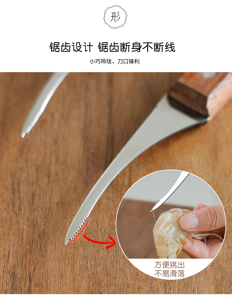 D厨房用虾线器 去虾线刀厨房清理虾肠剖鱼肚刀家用小工具开虾背刀剥虾神器