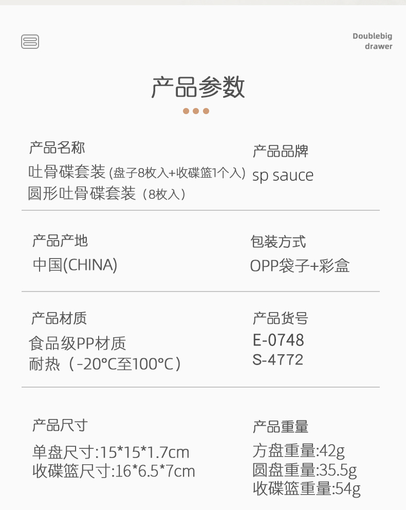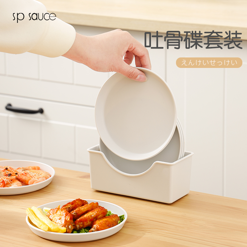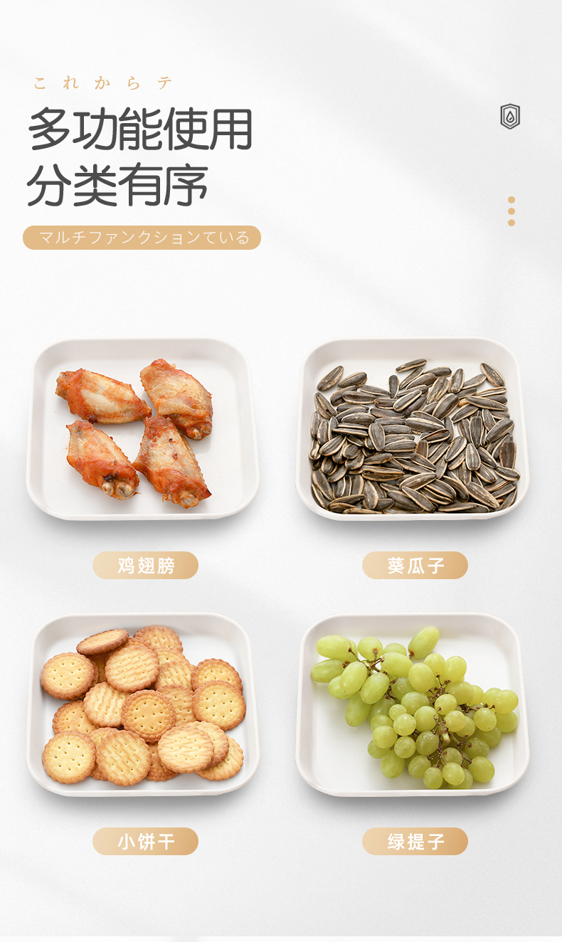 D吐骨碟套装(8枚入) 方形吐骨碟餐桌家用零食小吃点心盘干果水果坚果盘