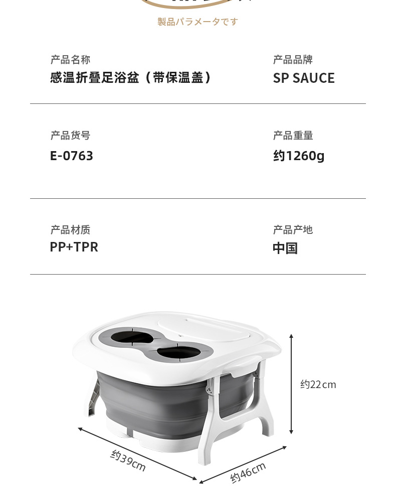 D 感温折叠足浴盆(带保温盖)