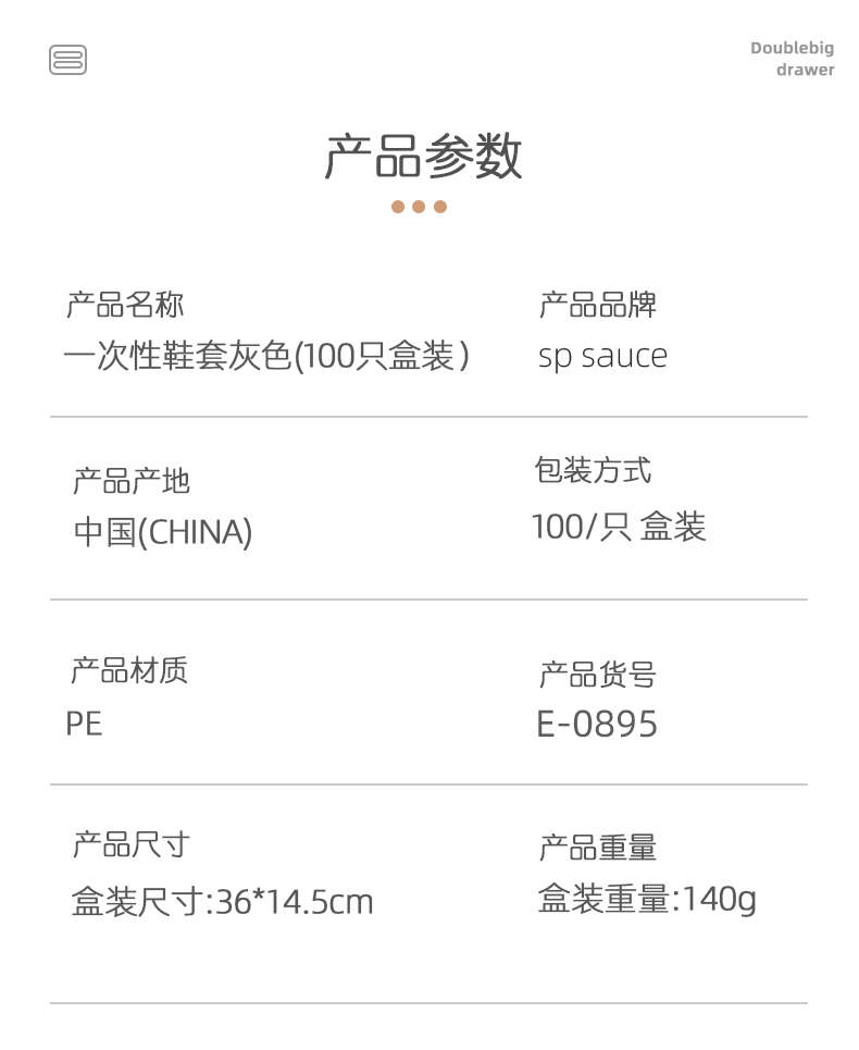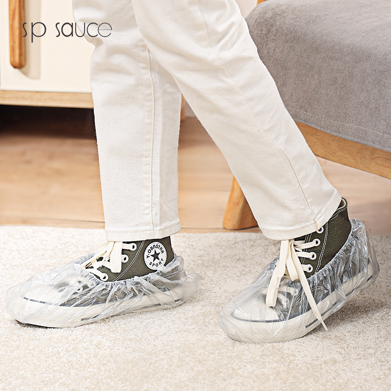 一次性鞋套灰色 (100只盒装) 一次性鞋套室内塑料防水脚套防尘鞋套家用盒装
