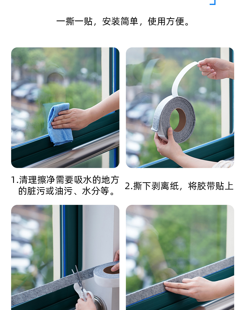 窗户玻璃吸水贴(3cm*4m) 窗户玻璃吸水贴加厚防冷凝水海绵条飘窗台淌水结露神器