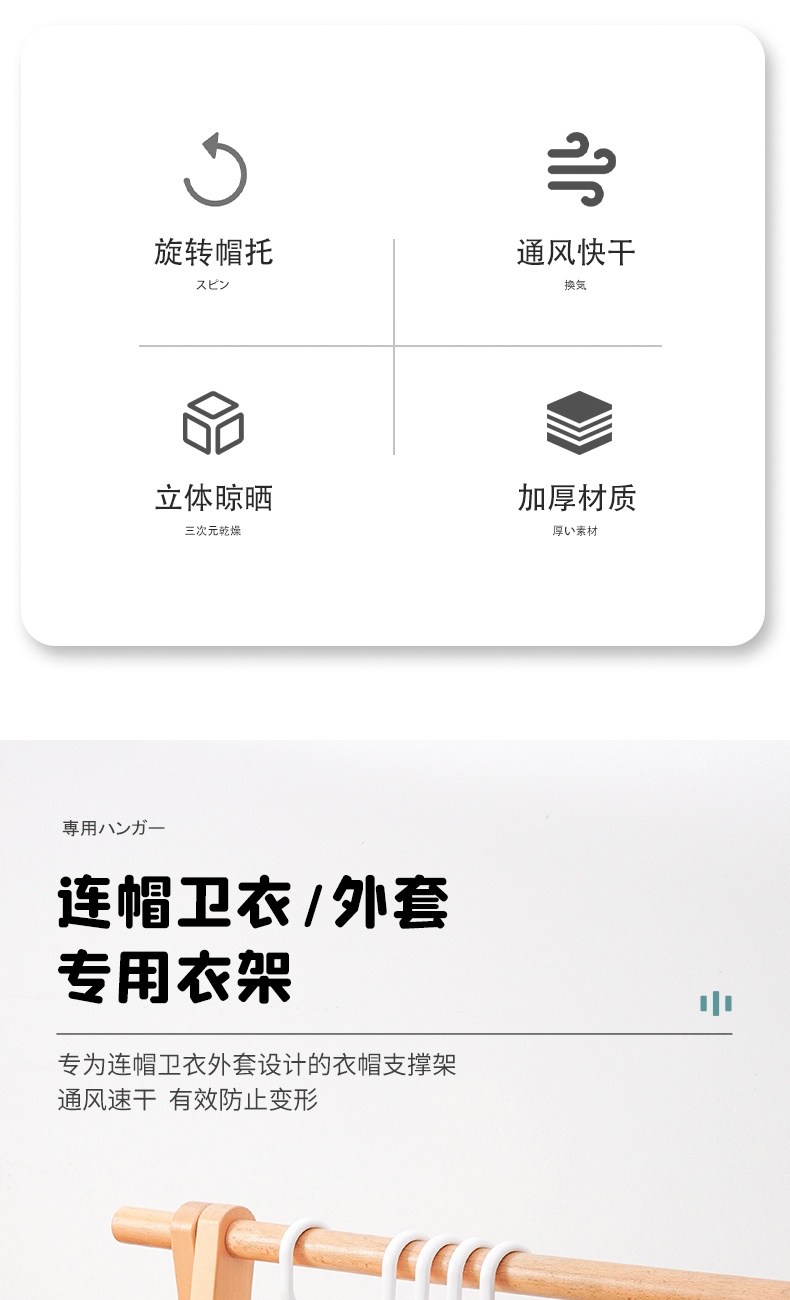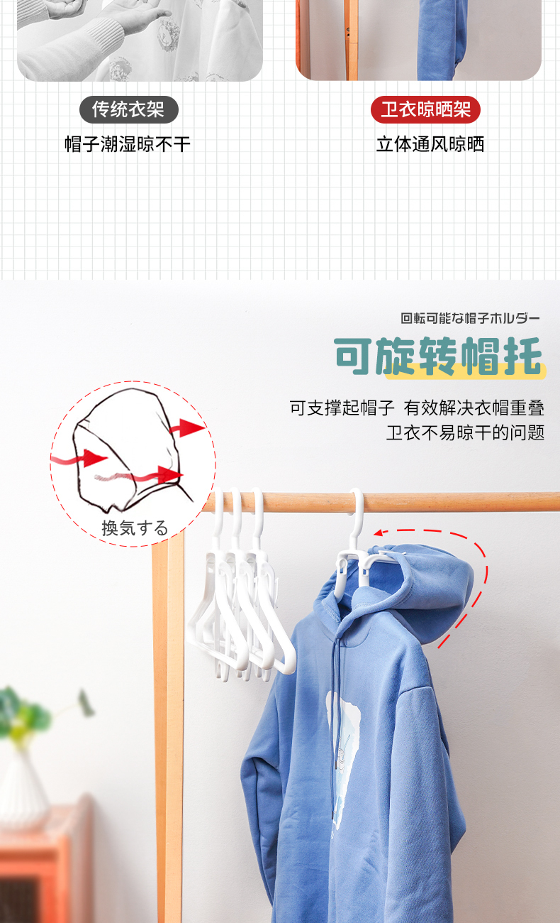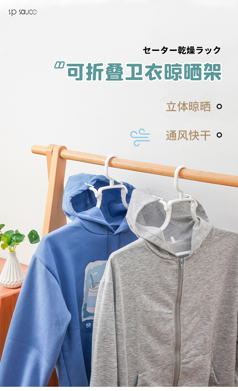 卫衣晾晒架(2pcs入) 创意晾衣架连帽卫衣成型晾晒架防风便携折叠无痕塑料衣架