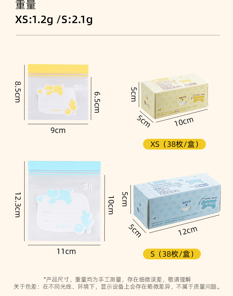 抗菌迷你密实袋 XS(38枚入) 辅食分装袋宝宝食品级密封袋小食袋婴儿零食自封冷冻储存袋保鲜袋