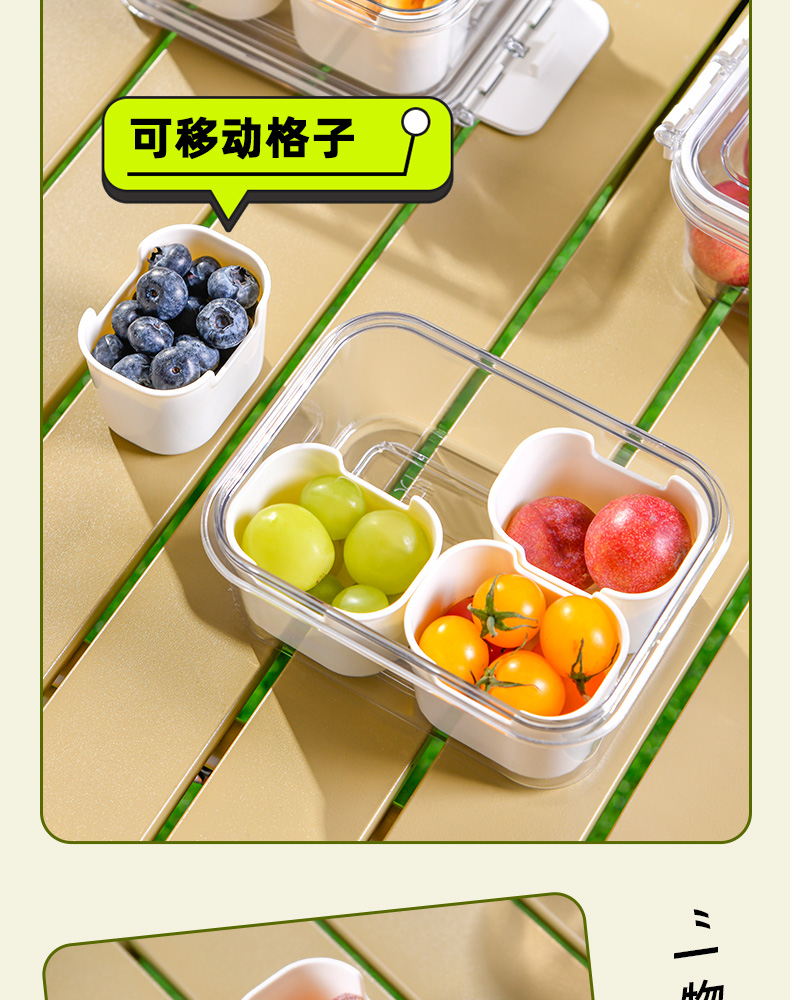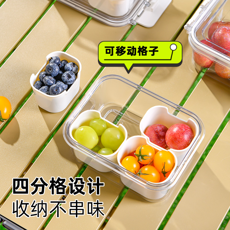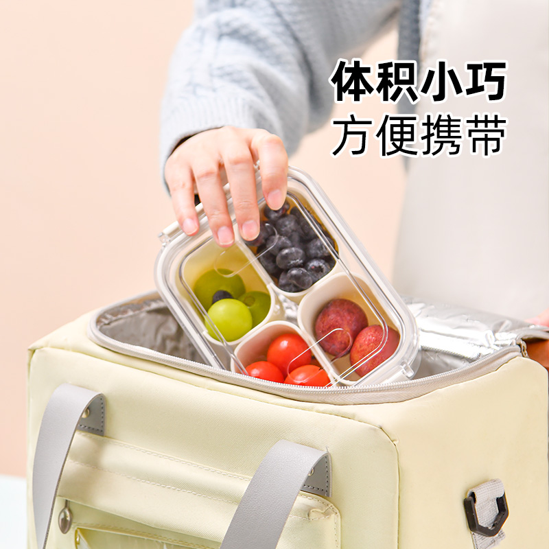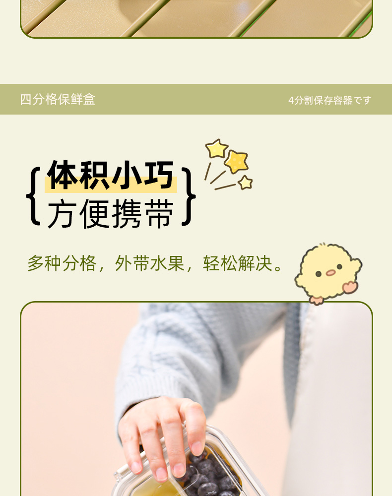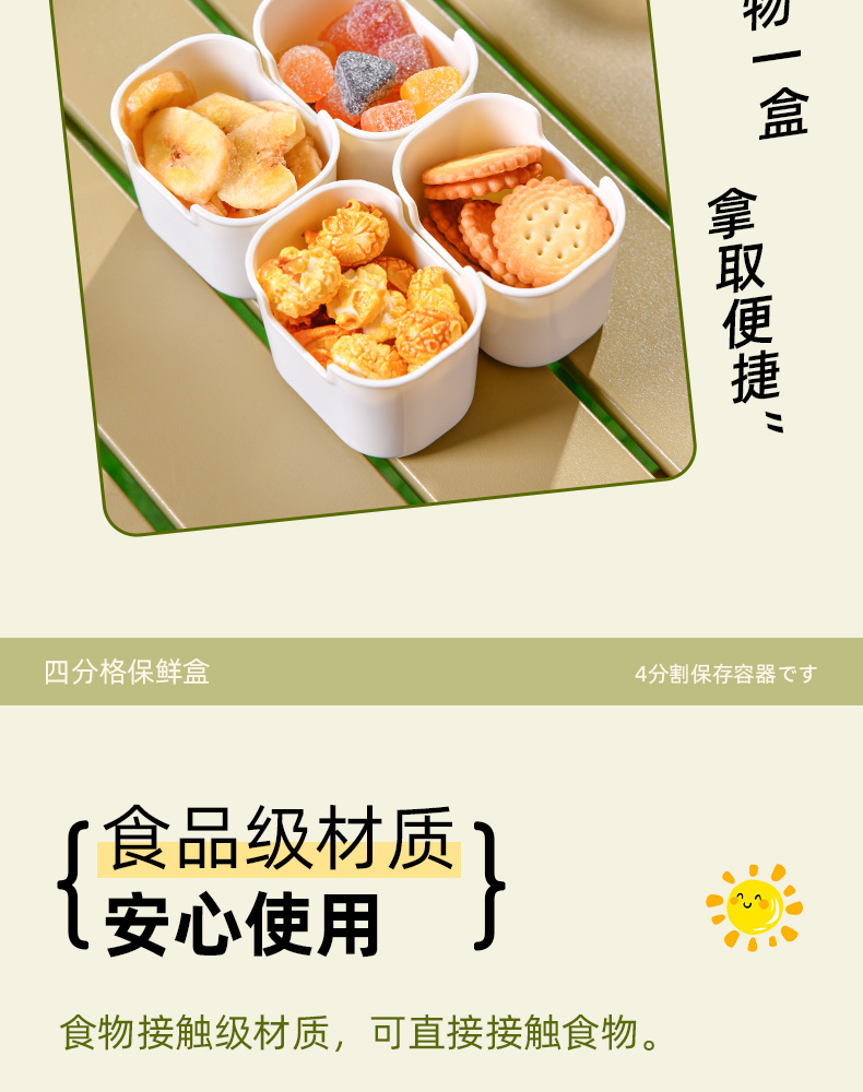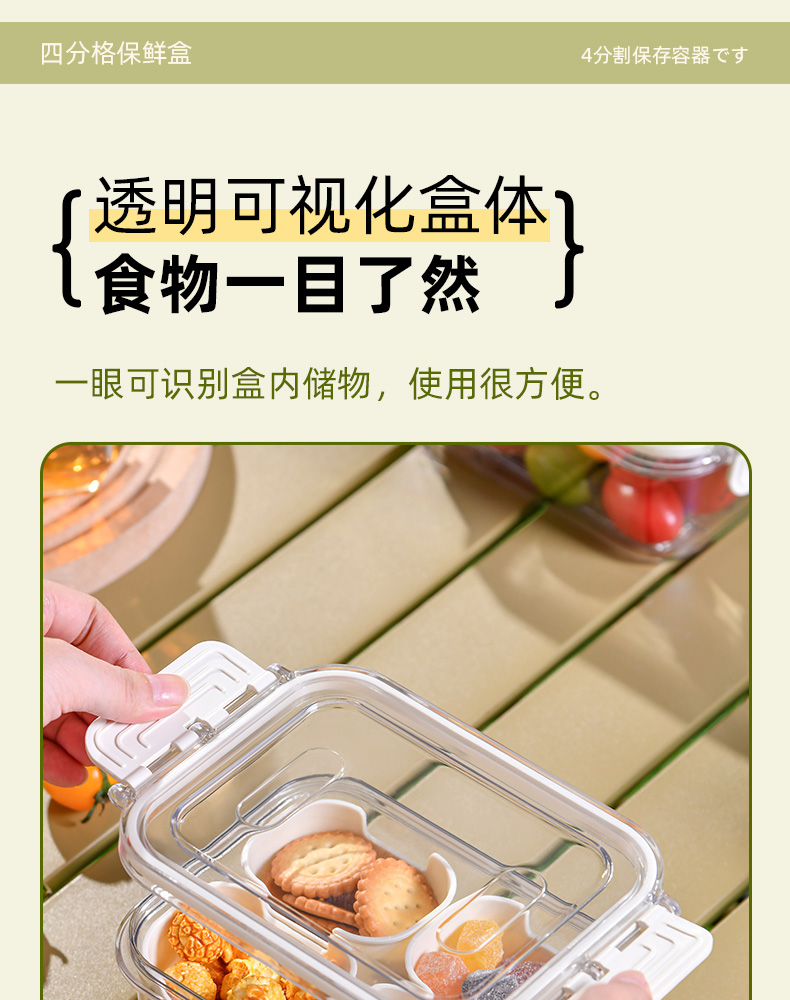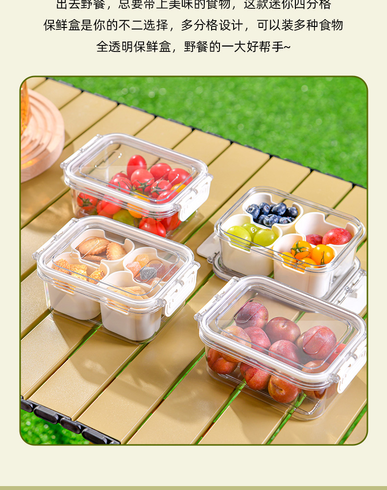 迷你四分格保鲜盒 日式迷你四分格保鲜盒食品级便携餐盒幼儿园儿童外出水果便当盒子