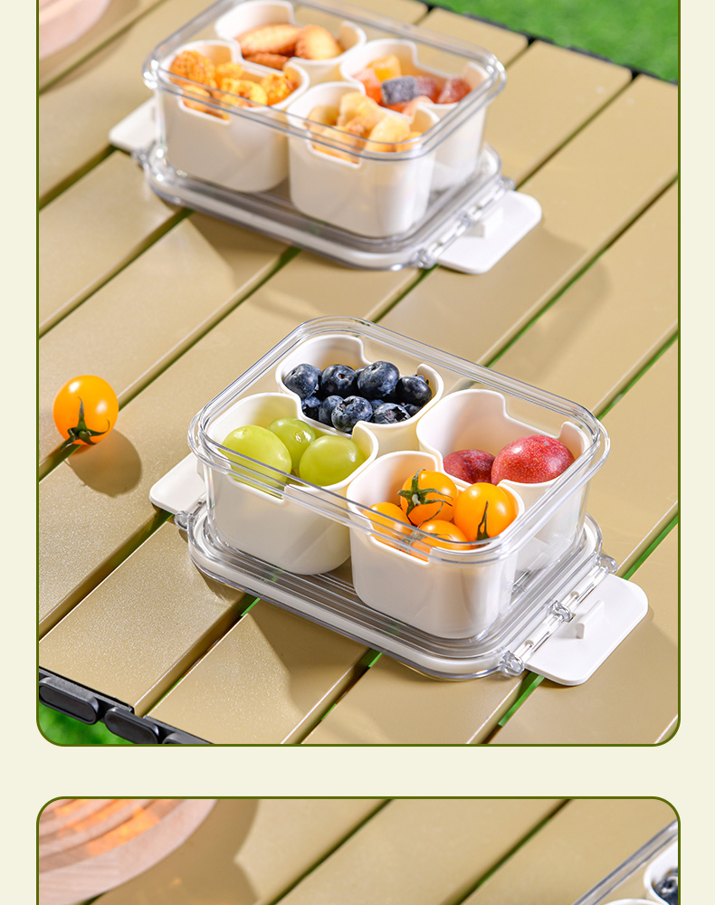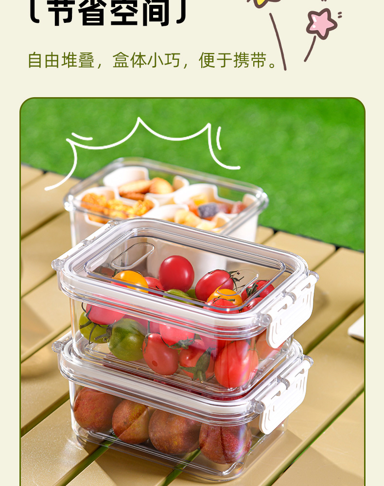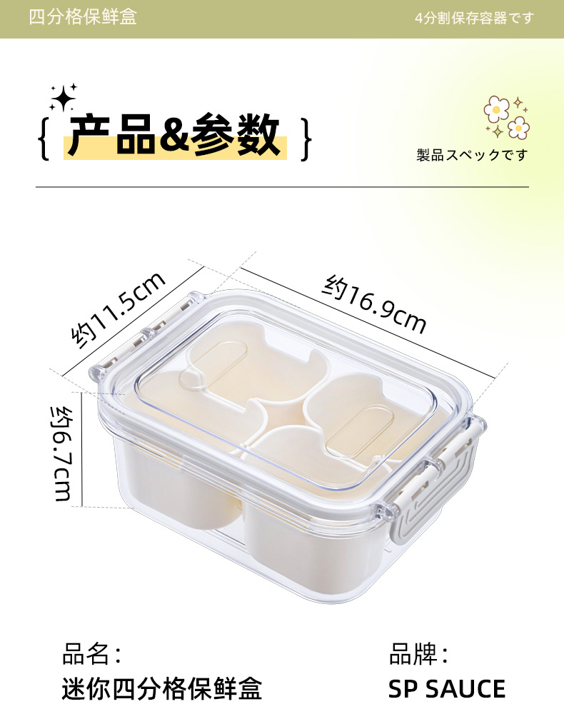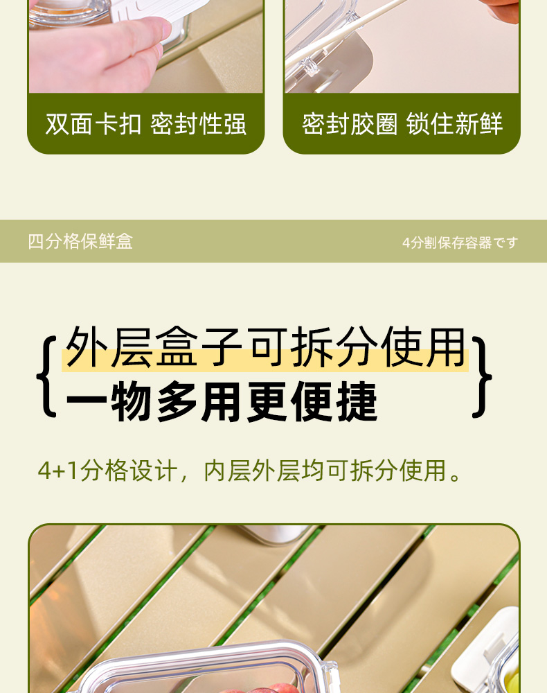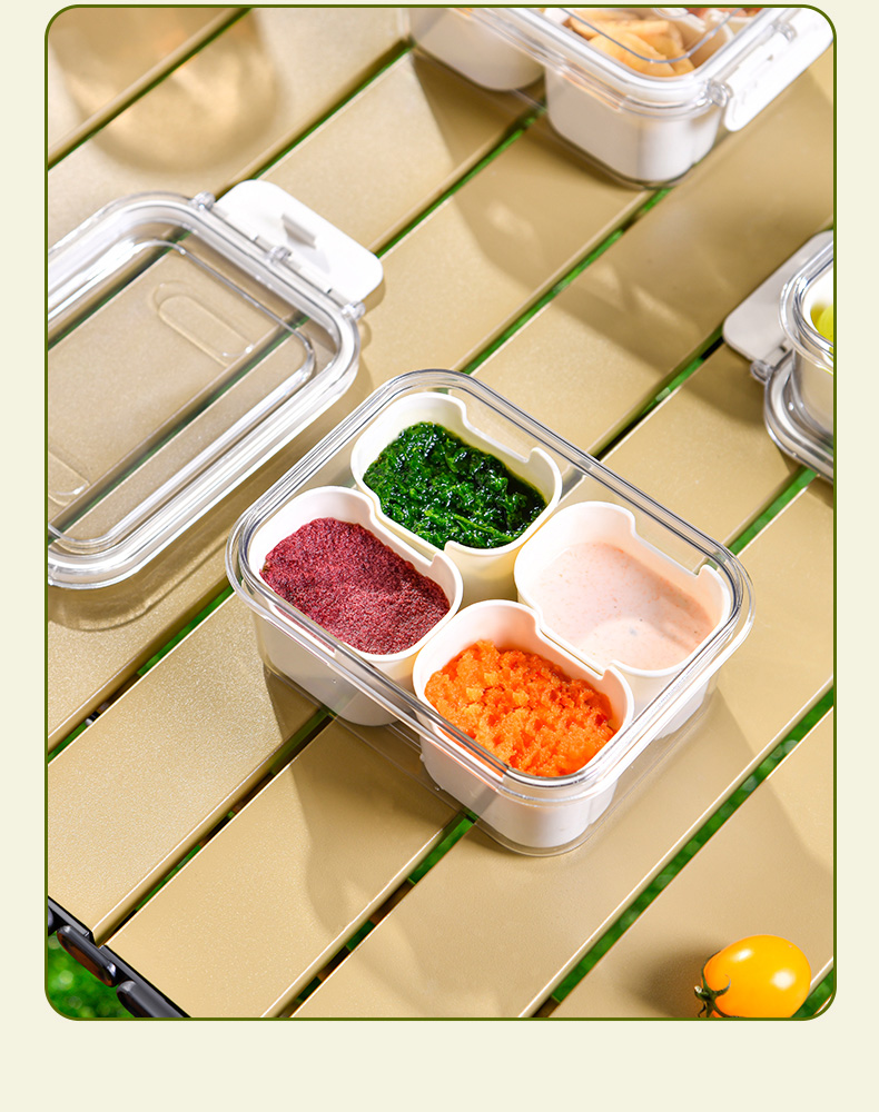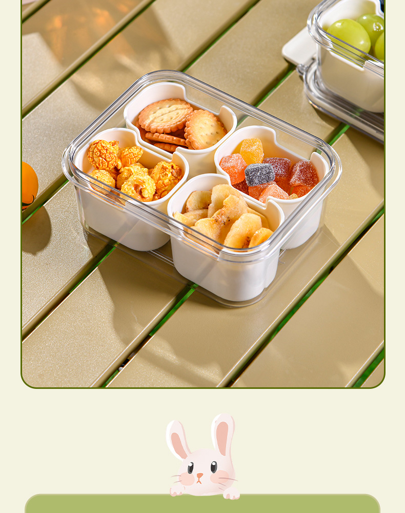 迷你四分格保鲜盒 日式迷你四分格保鲜盒食品级便携餐盒幼儿园儿童外出水果便当盒子
